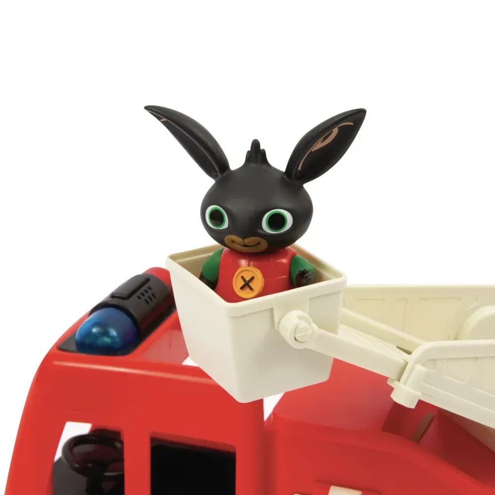 E’ Arrivato Il Camioncino Dei Pompieri Di Bing: Un Nuovo Veicolo Da Collezionare! È Dotato Di Suoni E Luci E Lampeggianti! La Scala Si Solleva E Si Estende Con Effetti Sonori. Include Un Cestello Per La Scala In Cui Bing Può Sedersi E Che Ruota Di 180 Gradi.