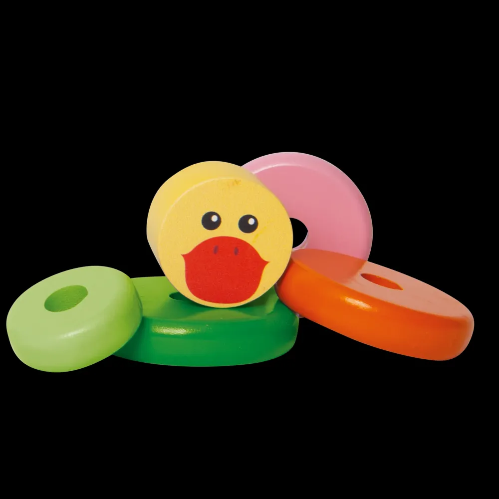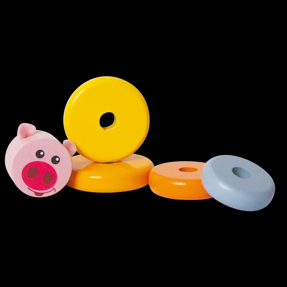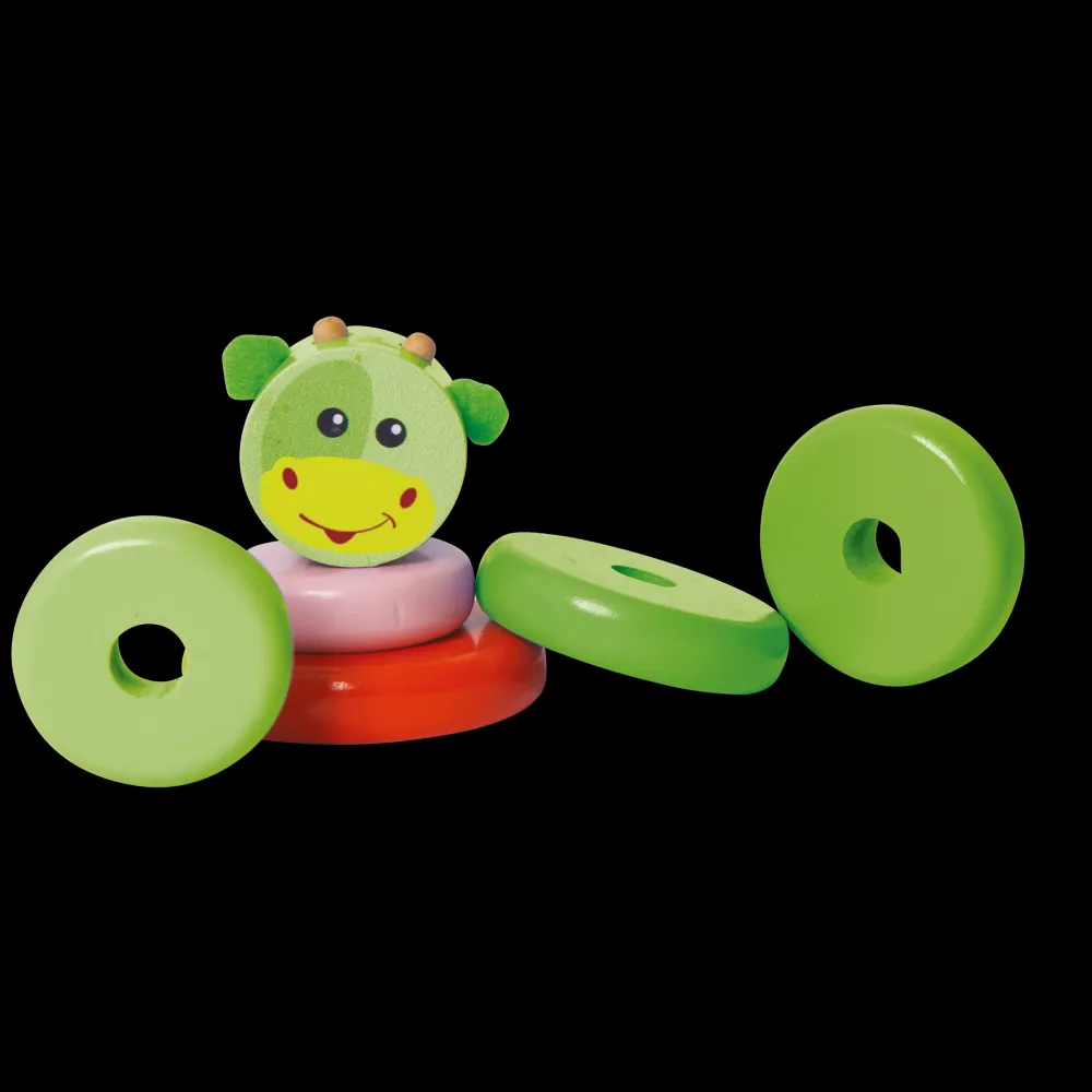 – Gli Anelli Impilati Formano 4 Simpatici Animali Con Dettagli In Tessuto: Mucca, Maialino, Gatto E Papera.