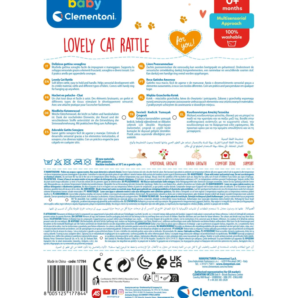 Un Morbido Gattino Sonaglio Baby Clementoni Per Intrattenere I Più Piccoli Con Elementi Multisensoriali. Una Gattina Con Bastoncino Facile Da Impugnare E Maneggiare Che Supporta Lo Sviluppo Sensoriale Grazie Agli Elementi Fruscianti Nelle Ali, Al Sonaglino E Ai Diversi Tessuti. Dolce E Tenera È Tutta Da Coccolare E Rappresenta Una Tenera Amica Che Rassicura Il Bambino E Incoraggia L’Esplorazione Sensoriale. Grazie Al Pratico Anello La Gattina È Appendibile Al Passeggino, Alla Culla O Ovunque Si Voglia, Per Portarlo Sempre Con Sé. Supporta Lo Sviluppo Dell’Udito E Della Manualità E Rafforza Le Capacità Motorie E Sensoriali. Ogni Particolare È Studiato Per Rendere Coinvolgente Ed Emozionante L’Utilizzo Del Peluche Da Parte Del Bambino E La Scelta Dei Tessuti È Frutto Di Un’Attenta Ricerca, Per Garantire La Massima Qualità E Sicurezza Durante Il Gioco. Sicuro E 100% Lavabile In Lavatrice. Un Gioco Prima Infanzia Ideale A Partire Dagli Zero Mesi, Rappresenta Il Regalo Per Neonato Perfetto.