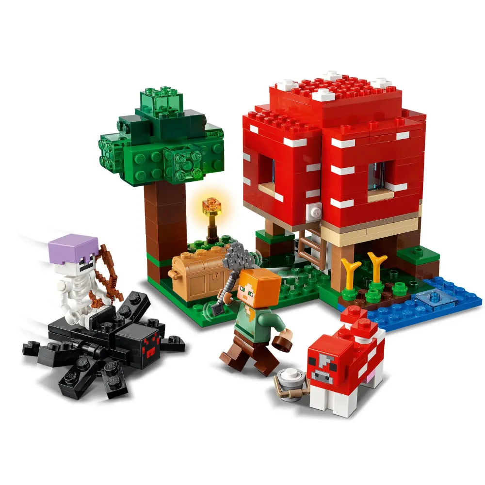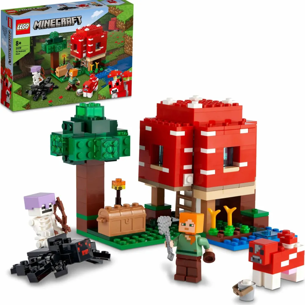 Il Set Lego Minecraft La Casa Dei Funghi (21179) Trasporta I Bambini In Un’Altra Dimensione E Offre Infinite Opportunità Creative, Sia All’Interno Della Casa Giocattolo Che Al Suo Esterno. I Piccoli Potranno Dare Sfogo Alla Propria Fantasia Costruendo La Casa Gigante: Le Pareti E Il Tetto Si Aprono Per Consentire Loro L’Accesso Al Tavolo Da Lavoro E Agli Arredi All’ Interno. All’Esterno, Uno Dei Protagonisti Di Minecraft, Alex, Munge Il Fungo Mucca E Raccoglie La Zuppa Ottenuta In Una Bella Ciotola. Ma La Quiete Non Durerà Molto: Uno Scheletro Cavalcatore Di Ragni È Pronto A Entrare In Scena. Questa Casa Minecraft Per Bambini Dagli 8 Anni In Su Ha Tantissimo Da Offrire!