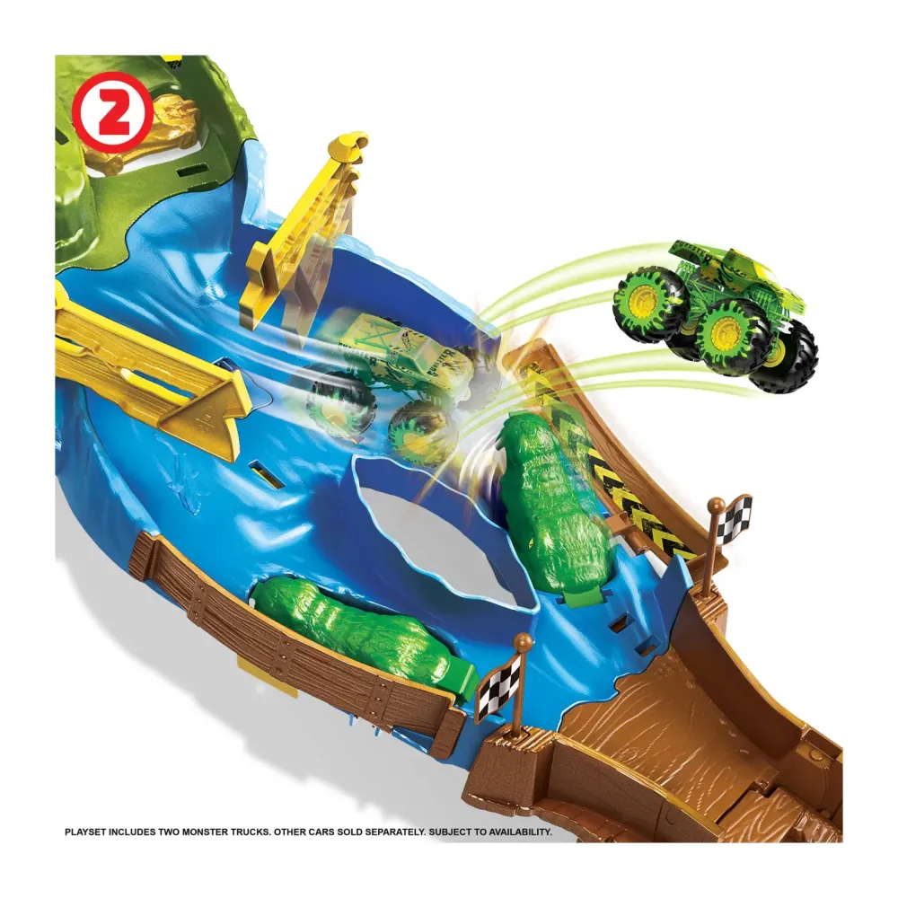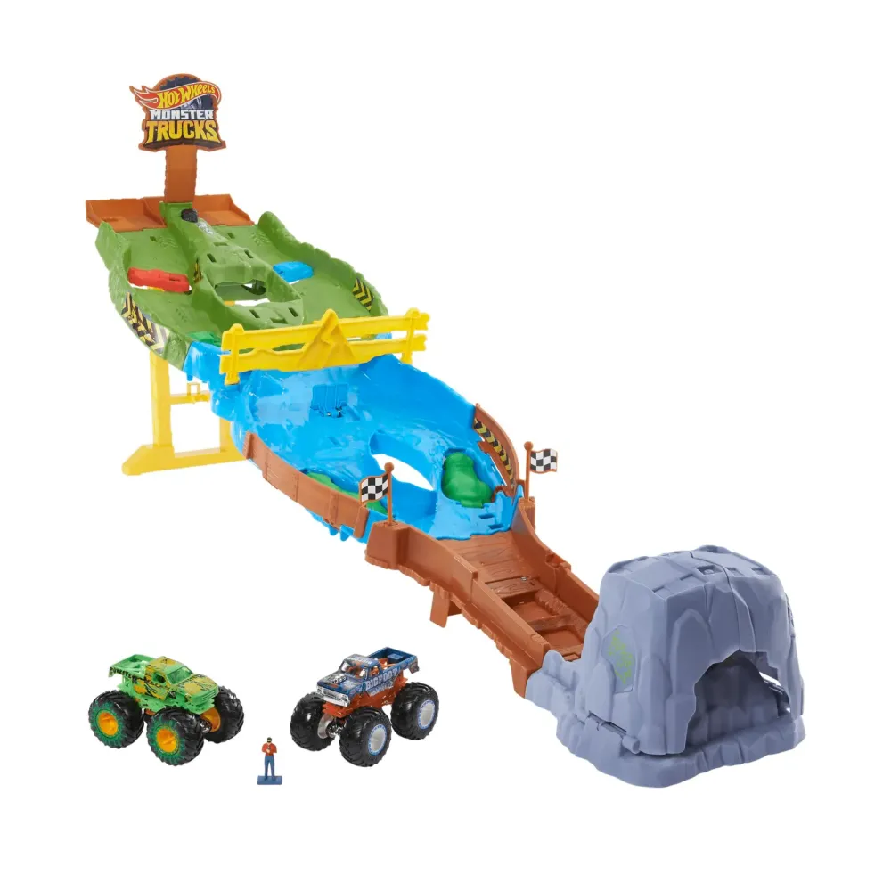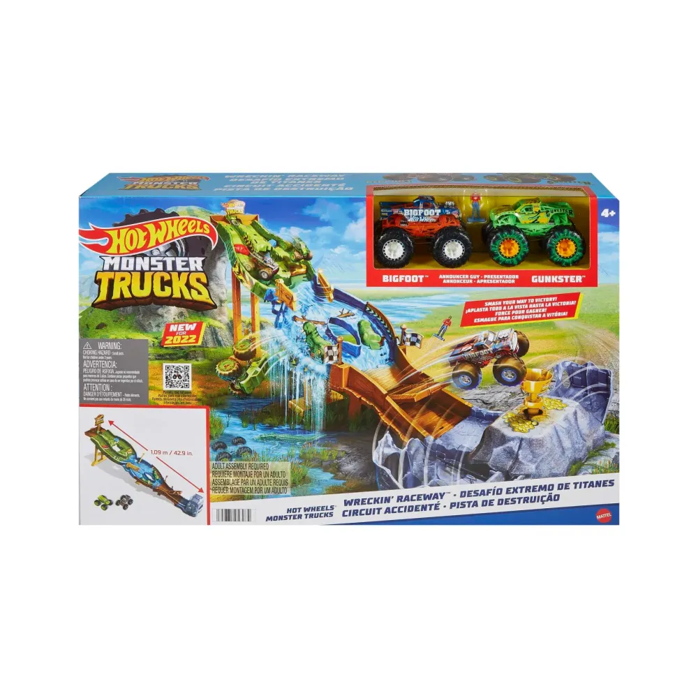 Scopri Qual È Il Monster Truck Più Veloce E Tosto Con Il Torneo Dei Titani Hot Wheels Monster Trucks! Ispirati Alle Epiche Corse In Discesa Della Serie Youtube ‘Torneo Dei Titani’, Bigfoot E Gunkster Si Affrontano E Si Scontrano Giù Per La Montagna, Travolgono Macchinine Da Distruggere E Attraversano Una Serie Di Ostacoli Che Conducono A Una Grotta Dove Reclamare L’Ambita Coppa Dei Titani. Il Primo Veicolo Che Passa Sul Ponte Innesca Un”Esplosione’, Facendo Volare Per Aria L’Avversario E L’Annunciatore. Il Set Si Ripiega Per Riporlo E Trasportarlo In Modo Pratico. Colori E Decorazioni Possono Variare.