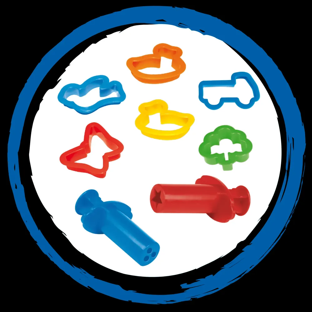 Confezione Con 5 Barattoli Da 142 Gr, 4 Barattoli Da 56 Gr, 1 Pressa Doppio Utilizzo Ed Accessori Per Creare Tante Figure Diverse. 27 Accessori Inclusi.Età Consigliata: 3+Avvertenze: Non Adatto A Bambini Di Età Inferiore A 36 Mesi. Pericolo Di Soffocamento Causa Piccole Parti.