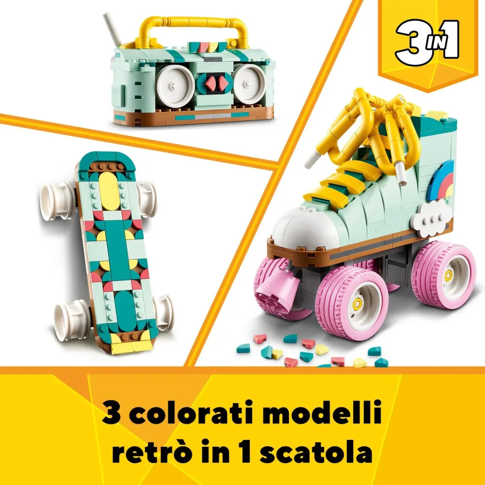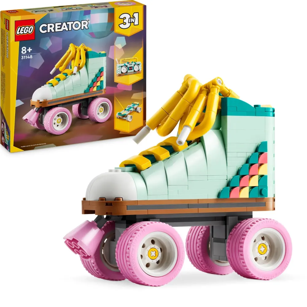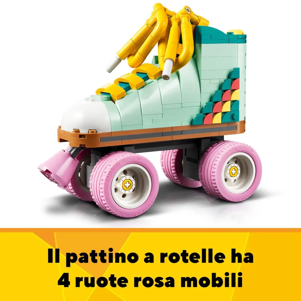 I Bambini Creativi Dagli 8 Anni In Su Possono Tornare Indietro Nel Tempo Con Questo Colorato Set Costruibile Pattino A Rotelle Retrò Lego® Creator (31148). Il Set Contiene Un Pattino A Rotelle Lego Giocattolo Con 4 Ruote Rosa Mobili, Freno Rosa, Spessi Lacci Gialli E Pezzi Colorati Con Cui I Bambini Possono Decorare Il Tacco Dello Stivale, Realizzando I Propri Design.