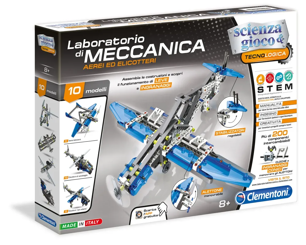Per Scoprire E Sperimentare La Meccanica Del Volo, Oggi C’È Il Laboratorio Di Meccanica – Aerei Ed Elicotteri.Un Fantastico Kit Con Cui Costruire 10 Modelli Dinamici Di Aerei E Elicotteri, Per Scoprire I Principi Fondamentali Dell’Aerodinamica.Più Di 200 Componenti, Tra Cui: Barre Per Assemblare Le Carlinghe, Pannelli, Eliche, Ingranaggi, Carrucole E Giunti Cardanici.Un Manuale Illustrato Con Tutte Le Istruzioni Per Assemblare I Modelli E Gli Approfondimenti Sulla Storia Del Volo.