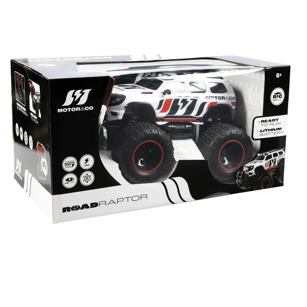 Grande Fuoristrada Completamente Personalizzato Motor&Co: Scocca In Metallo, Super Ruote In Gomma Scolpite, Luci Reali E Frequenza 2.4 Ghz Per Giocare Con I Tuoi Amici Senza Interferenze. Un Vero Concentrato Di Divertimento, Subito Pronto A Partire Con Le Pile E Batterie Incluse Nella Confezione!