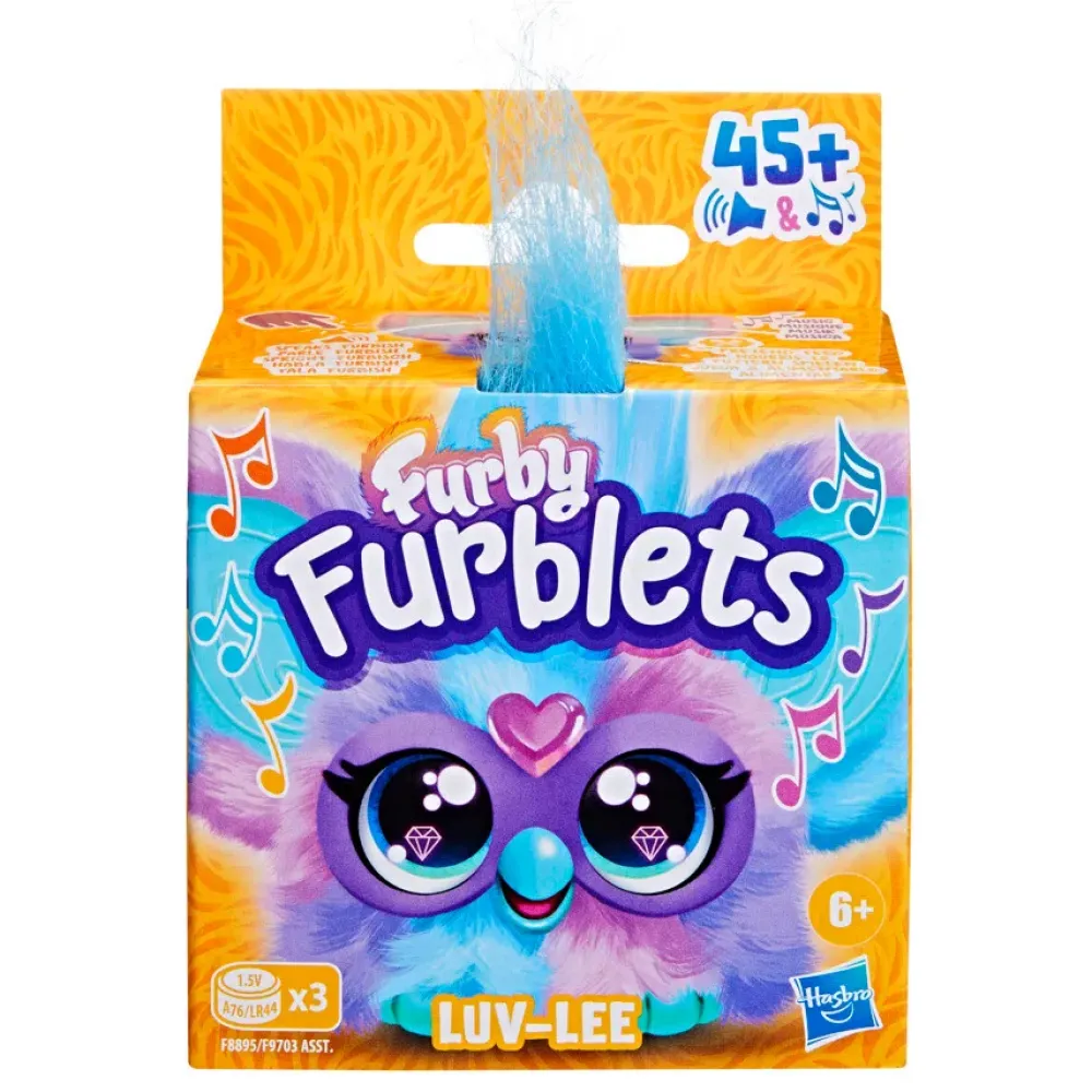 Con I Furblets Puoi Portare La Simpatia Di Furby Sempre Con Te! I Furblets Sono Coloratissimi E Ce Ne Sono 6 Tutti Da Collezionare. Luv Lee Presenta Dei Colori Sgargianti: Viola E Azzurro! Accarezza La Testa A Luv Lee Per Fargli Aprire Le Orecchie E Poi Scopri Le Sue 3 Modalità! Premigli La Testa Per Farlo Parlare, Premi Il Becco Per Dargli Da Mangiare E Se Premi La Gemma A Forma Di Cuore Potrai Ascoltare Delle Tenere Canzoncine. I Furblets Hanno Oltre 40 Frasi E Suoni! E Se Li Avvicini Ad Un Furby Si Riconosco E Interagiscono!