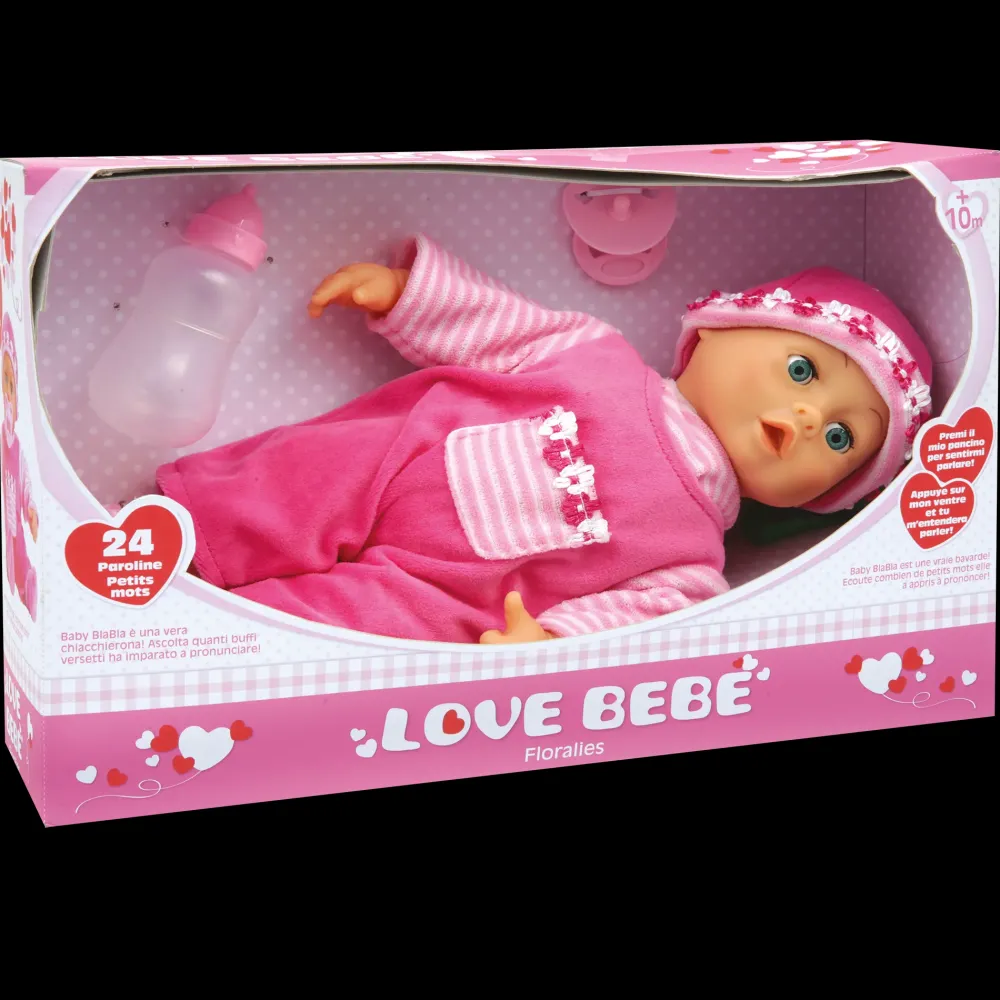 Floralies È Un Morbido Bebè Con Funzioni, Premendo Il Suo Pancino Potrai Ascoltare 24 Paroline! La Confezione Include Anche Biberon E Ciuccio.