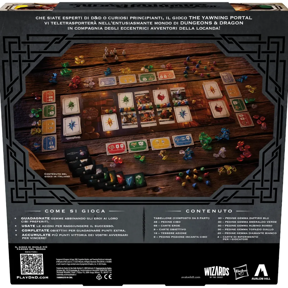 Preparati A Correre Avanti E Indietro Nella Taverna Portale Sbadigliante Con Il Gioco Dungeons & Dragons: The Yawning Portal, Una Variante Innovativa Dell’Esperienza D&D Per Giocatori Esperti E Principianti! Questa Iconica Taverna Attrae Avventurieri Affascinanti Che Hanno Una Cosa In Comune: Sono Affamati E Hanno Gusti Particolari In Fatto Di Cibo. Gioca Nei Panni Di Un Dipendente Della Taverna E Servi I Clienti Abbinando Le Pedine Cibo Con Le Ordinazioni Raffigurate Sulle Rispettive Carte Eroe. Ottieni Gemme Colorate (E Punti) Per Ogni Abbinamento O Un Bonus Per Aver Completato Un Ordine. Accumuli Più Punti Se Sei Il Primo A Terminare Una Sfida Obiettivo O Se Ottieni Un Bonus Finale. Vince Il Giocatore Che Ha Totalizzato Il Punteggio Più Alto Alla Fine Del Gioco! Ma C’È Un Risvolto: Le Gemme Colorate Che Appaiono Più Spesso Sul Tabellone Ricevono Il Punteggio Più Alto. Usa Quindi La Strategia Per Ottenere Più Punti Degli Avversari. Questo Gioco D&D È Un Regalo Perfetto Per Gli Appassionati E I Nuovi Giocatori Di D&D Ed È Un Gioco Divertente Per Le Serate Di Giochi In Famiglia. Dungeons & Dragons, Il Suo Logo, D&D, Reami Dimenticati E The Yawning Portal Sono Marchi Commerciali Di Wizards Of The Coast Llc. Copyright 2022 Wizards. Tutti I Diritti Riservati. Avalon Hill E Hasbro E Tutti I Marchi E Loghi Correlati Sono Marchi Commerciali Di Hasbro, Inc.