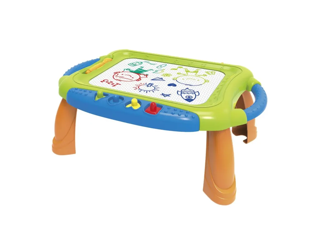 Lavagna Magica A 4 Colori Che Si Trasforma In Un Comodo Tavolino Da Disegno! La Confezione Contiene: 1 Lavagna Magica, 1 Penna Magica, 4 Timbrini E 4 Gambe Rimovibili.
