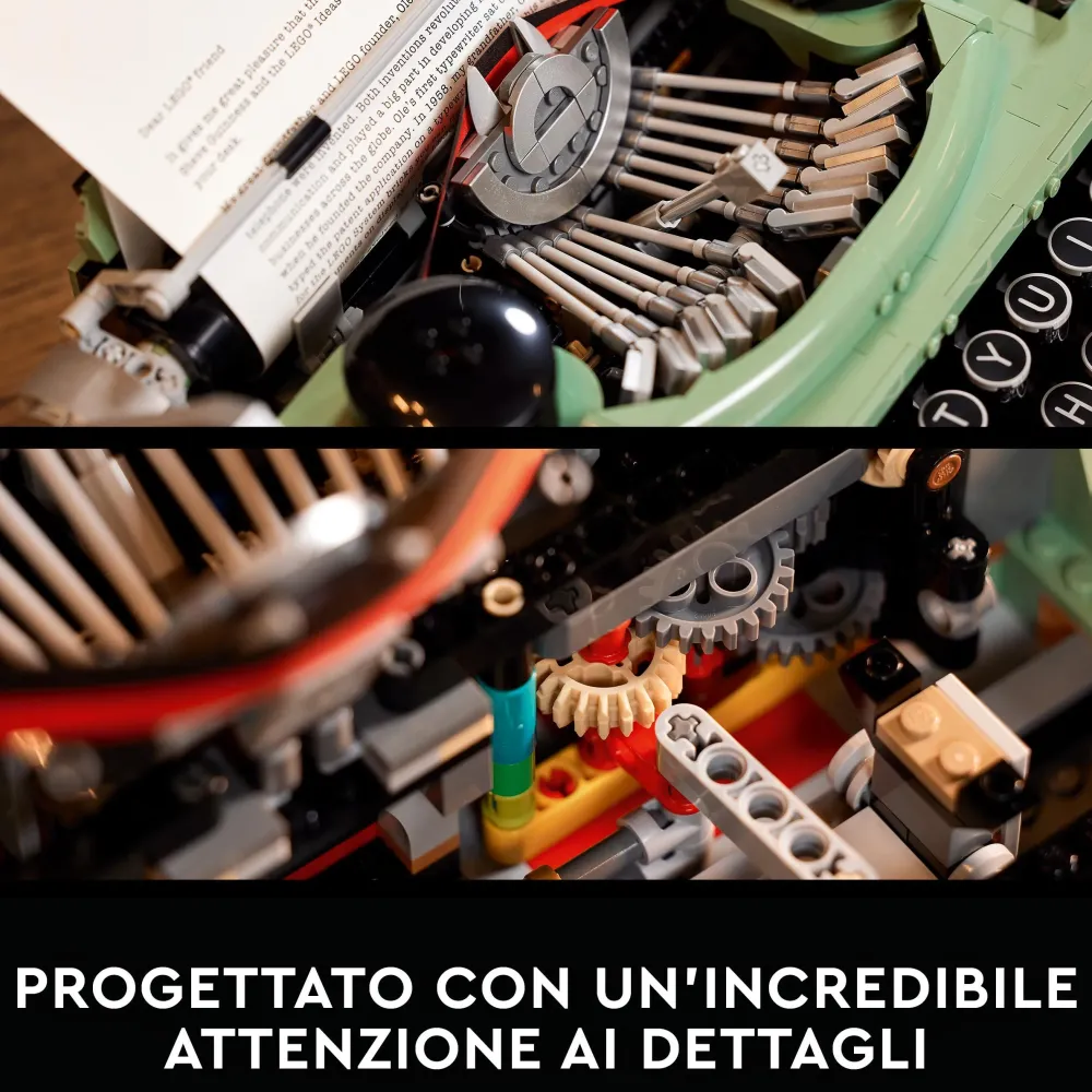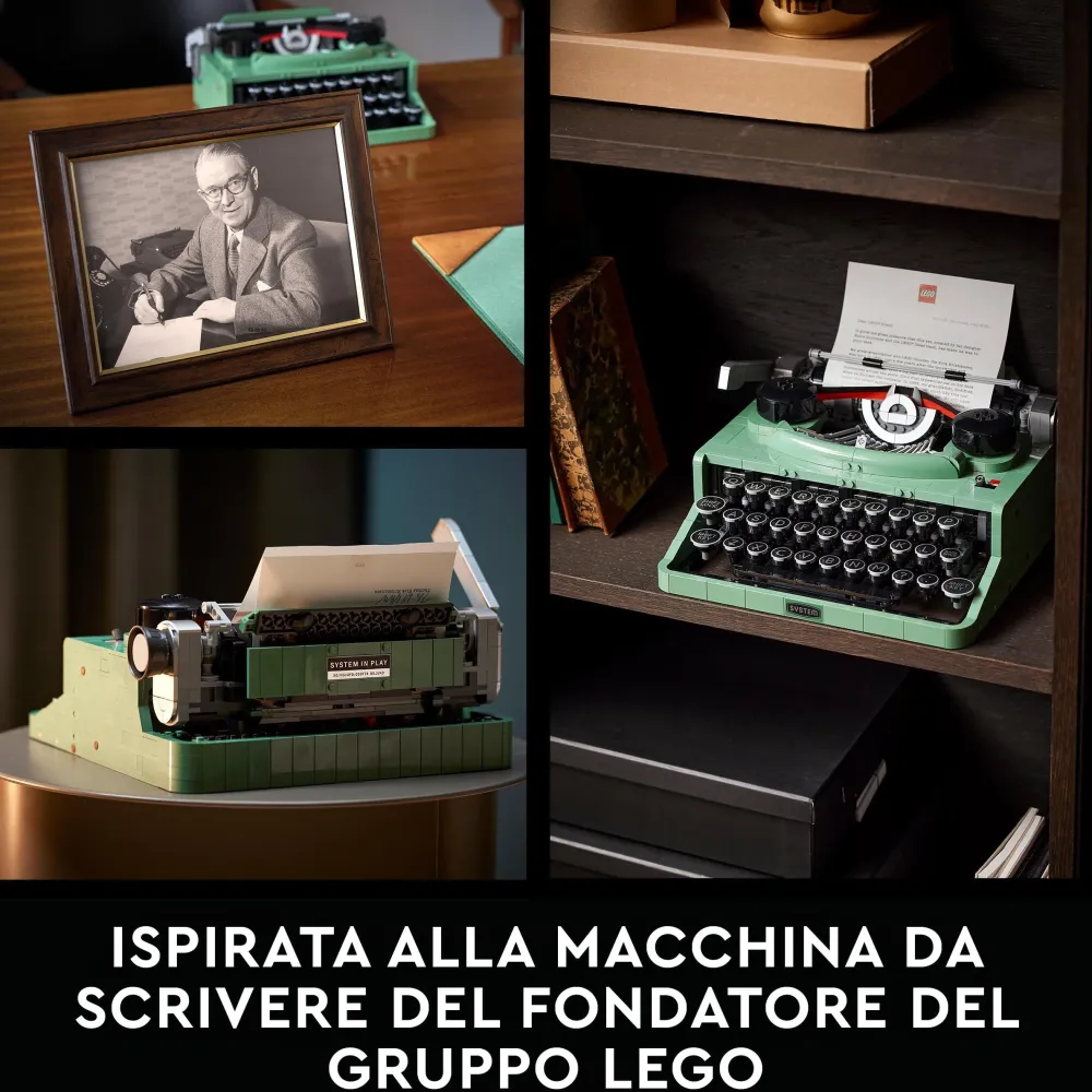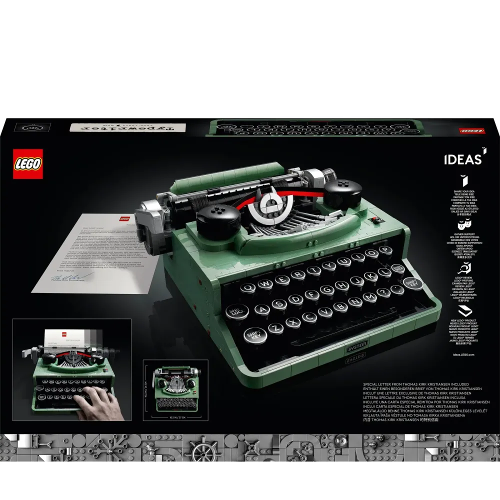 Stacca La Spina Dalla Vita Digitale E Torna Alla Semplicità Del Passato Mentre Costruisci Un Modello Lego® Di Una Vecchia Macchina Da Scrivere (21327). Il Design È Ispirato Alla Classica Macchina Da Scrivere Utilizzata Da Ole Kirk Kristiansen, Il Fondatore Di Lego Group, E Riproduce Gli Stessi Movimenti E Gli Stessi Suoni Di Quella Originale. Il Martelletto Centrale Realizzato In Mattoncini Si Solleva Ogni Volta Che Si Preme Un Tasto Ed È Collegato Al Carrello Che Si Sposta Durante La Digitazione. Inoltre, Nel Rullo Puoi Inserire Un Foglio Di Carta Vero.