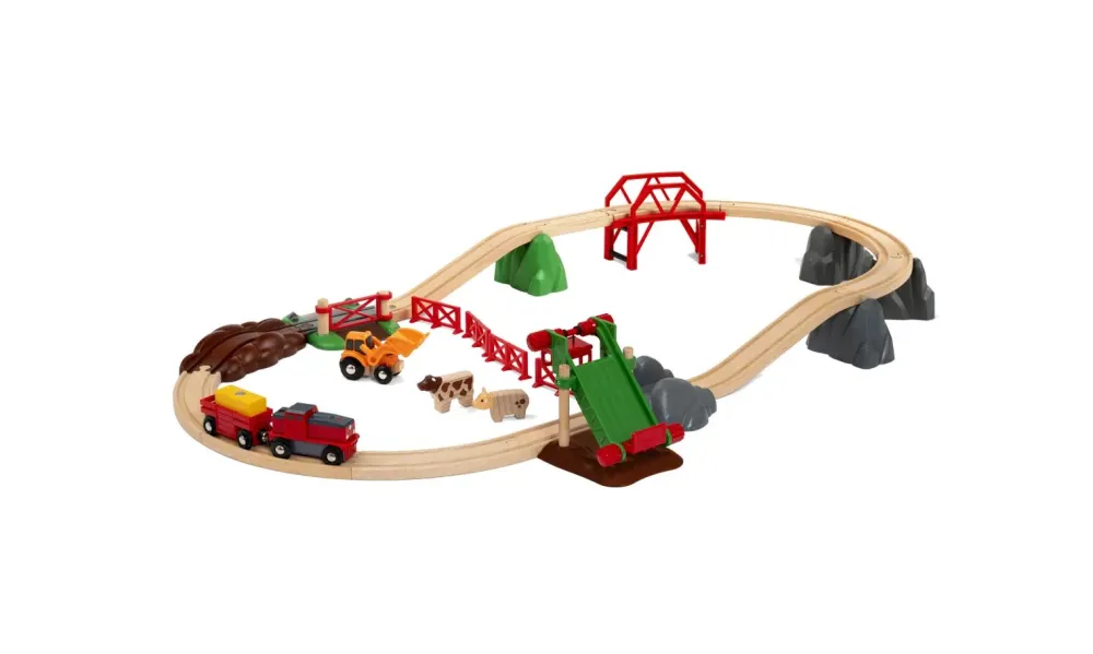 Usa La Stazione Di Carico Del Fieno Di Questo Set Ferroviario Per Sollevare Il Fieno E Caricarlo Nel Vagone Ferroviario. Quindi Viaggia Attraverso La Campagna Superando Le Colline Per Arrivare Alla Fattoria, Dove Ti Aspetta Il Trattore Che Consegnerà Il Mangime Agli Animali Nei Campi.