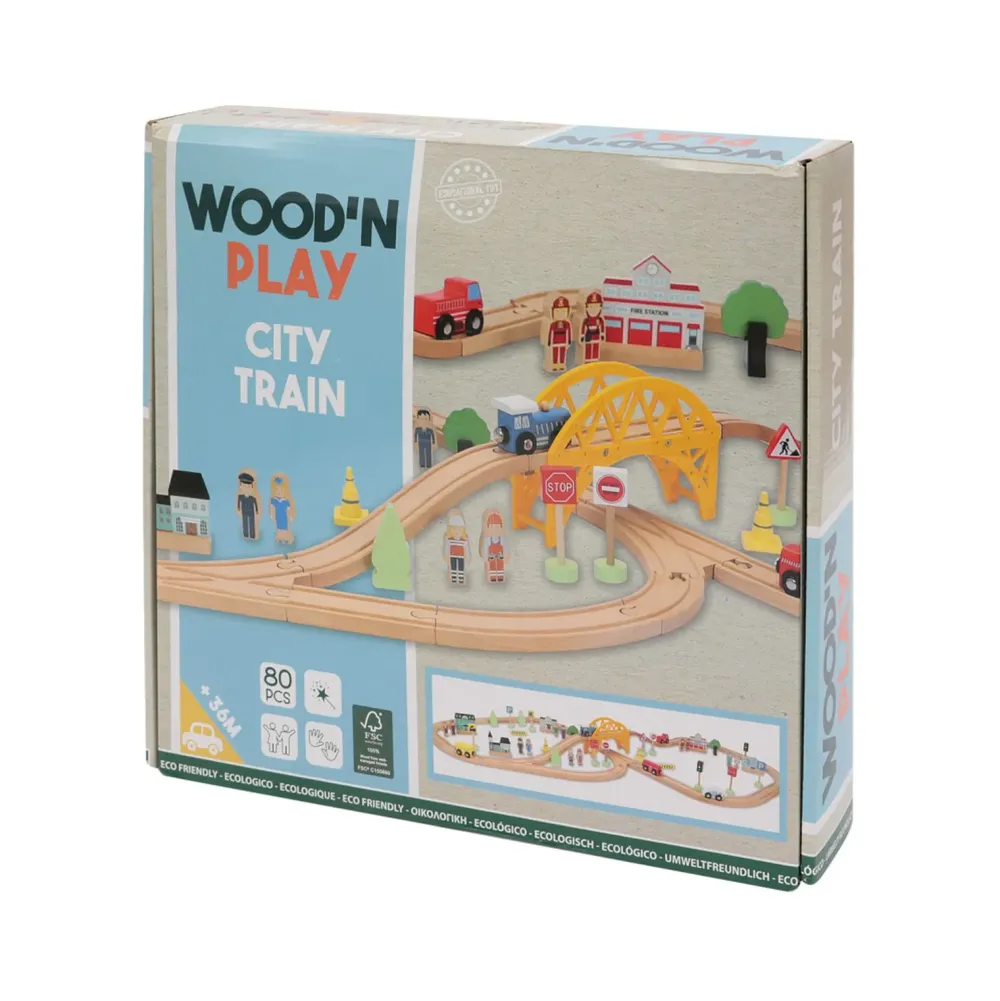 – Il Trenino Composto Da Locomotiva E Due Vagoni, In Arrivo Alla Stazione, Sfreccia Sui Binari, Passando Sul Ponte, E Attraversando Il Centro Città, Dove Trova L’Ospedale, La Caserma Dei Pompieri, La Scuola E L’Albergo.