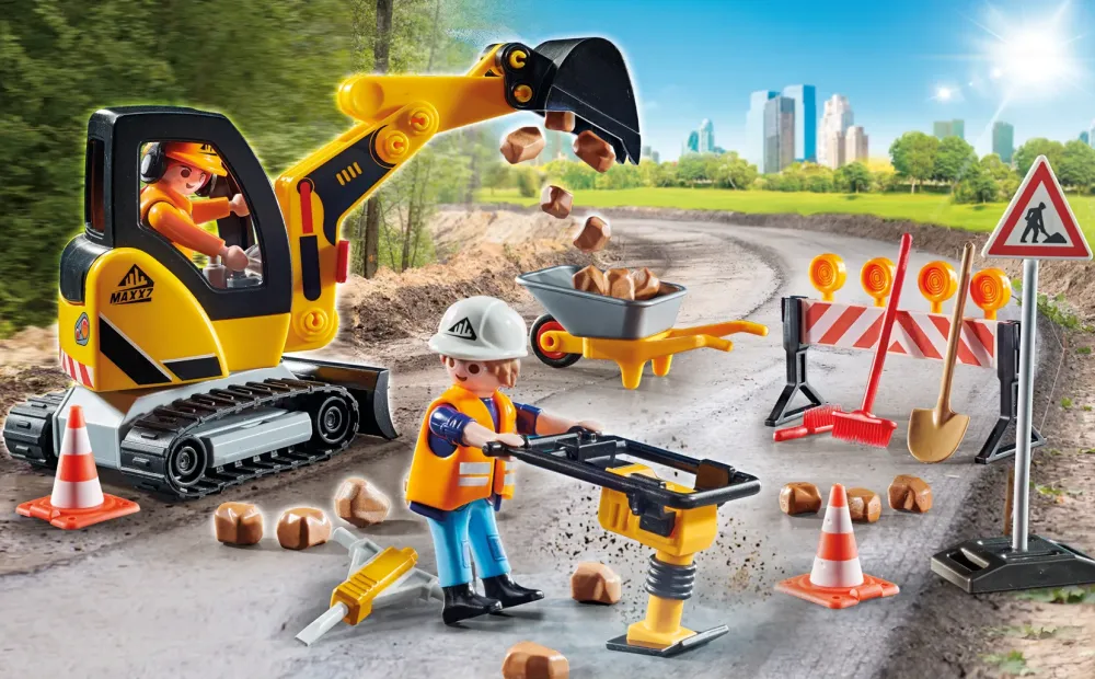 C’È Così Tanto Da Fare Nel Cantiere Stradale Di Playmobil. Bisogna Costruire Una Nuova Strada E Per Farlo, Si Usa Prima Il Martello Pneumatico, Si Rimuovono Le Pietre Con Il Mini Escavatore E La Carriola E Dopo Il Sottosuolo Viene Livellato E Compattato Con Il Tamper. La Squadra Playmobil Lavora Fianco A Fianco E Completa Rapidamente Il Tratto Stradale.