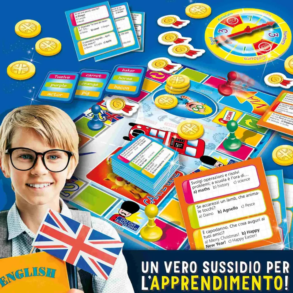 Un Gioco Di Percorso A Quiz, Basato Sui Programmi Della Scuola Primaria, Per Imparare E Divertirsi Con L’Inglese. Grazie Ai Tre Livelli Di Difficoltà, Possono Giocare Insieme Bambini Di Età Diversa. Rispondi Alle Divertenti Domande Sulle Parole Di Uso Più Comune, Avanza Sul Tabellone E Conquista Le Coccardine!.