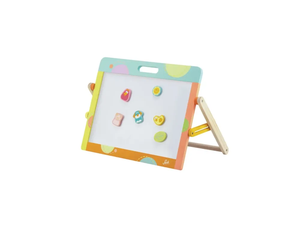 Ecco Un Pratico Articolo Ricco Di Funzionalità E Giocabilità, In Perfetto Stile Sevi. La Lavagna Da Tavolo Ha Un Lato Magnetico Ed Uno In Ardesia Ed È Ricca Di Accessori: 6 Gessetti Colorati, 1 Pennarello E 1 Cancellino .