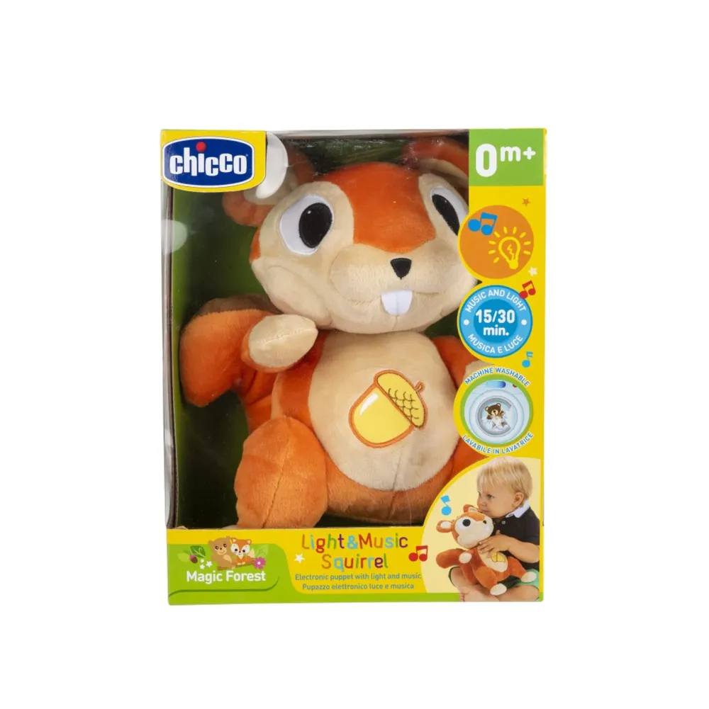 Soffice Pupazzo Da Coccolare A Forma Di Scoiattolo. La Luce E Le Melodie Intrattengono Il Bambino E Gli Donano Momenti Di Relax.1. 30 Cm In Altezza, Per Coccole E Abbracci Formato Gigante!2. Premendo La Ghianda Sulla Pancia Del Peluche, Si Attivano E Disattivano Luce E Melodie New Age, Con Un Ciclo Automatico Di 15 O 30 Minuti.