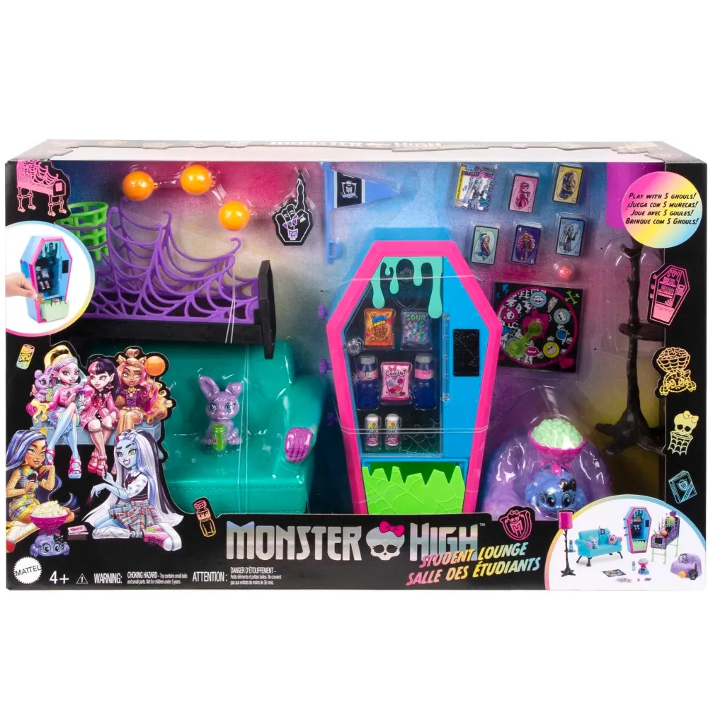 Il Salone Degli Studenti È Il Luogo Preferito Di Ogni Ghoul Per Fare Il Tifo Da Monster High™! Questo Playset Contiene Un Distributore Automatico Funzionante, Un Gioco Arcade Di Casketball, Mobili Inquietanti, Due Animali Domestici E Oltre 15 Accessori A Tema. I Bambini Dai 4 Anni In Su Inventeranno Tantissime Storie Spettrali Per Le Loro Bambole Monster High™ Con Questo Playset Della Sala Studenti Da Urlo! Le Bambole Non Sono Incluse. I Colori E Le Decorazioni Possono Variare.