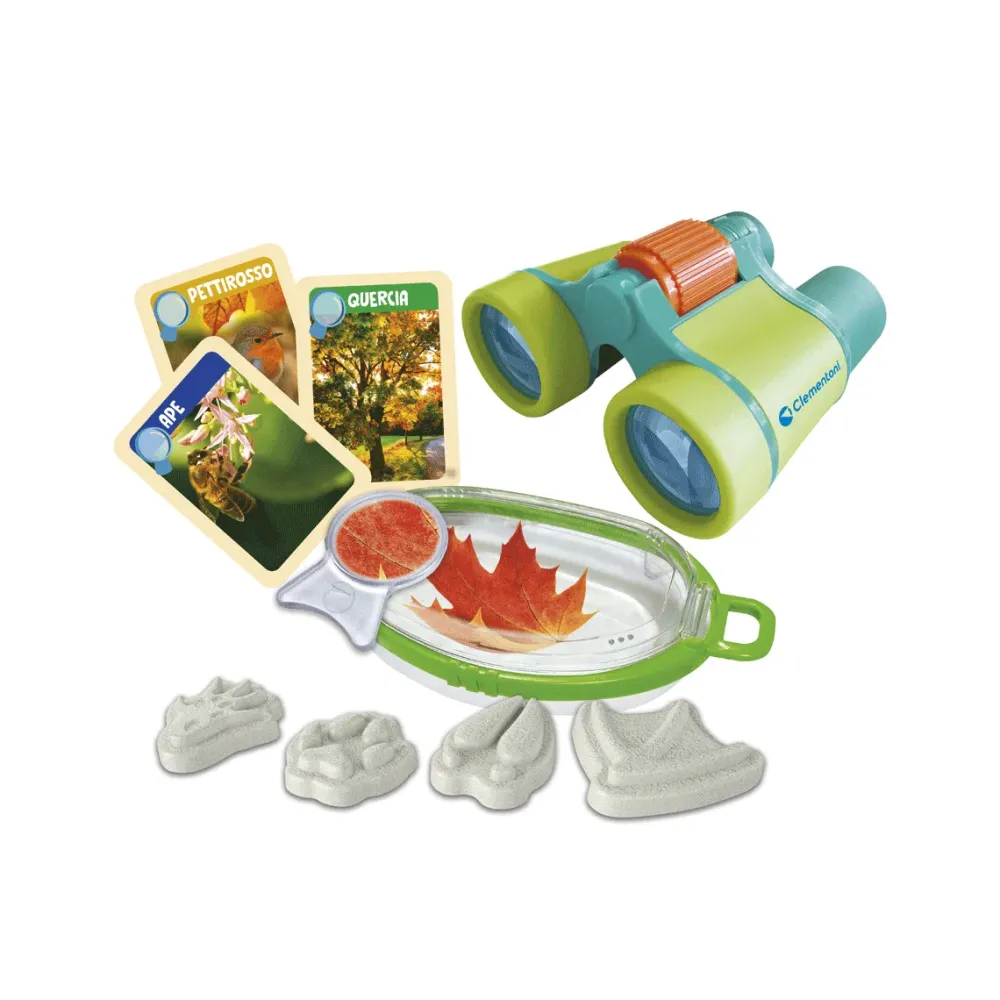 Contenuto Del Gioco: Un Binocolo Da Birdwatcher, Uno Speciale Visore Per Insetti, Stampini In Gesso Per Ricreare Impronte Di Animali E Carte Esplorazione Con Tante Informazioni Sulla Natura E Manuale Scientifico.