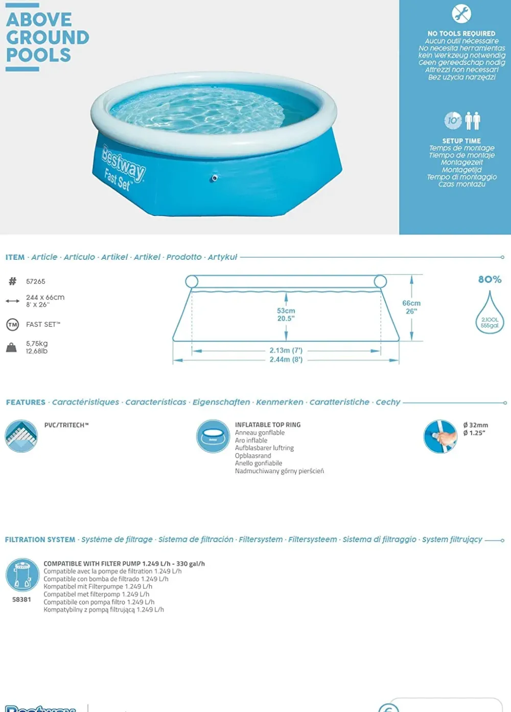 La Piscina Fast Set ™ 8 ‘X 26’ ‘/244×66 Cm Di Bestway® È Una Grande Piscina Per Famiglie.