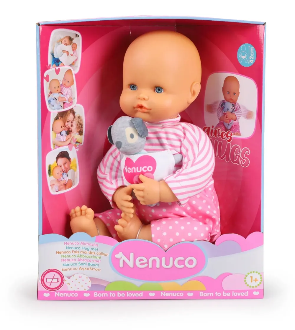 Bambola Nenuco Con Corpo Morbido Con Vestitino Rosa Rimovibile. Le Braccia Si Chiudono In Un Tenero Abbraccio. Include Un Simpatico Cucciolo Morbido Che Potrà Essere Inserito Nella Tasca Del Vestitino Di Nenuco Così Saranno Sempre Insieme . Per Bambine E Bambini Da 1 Anno.