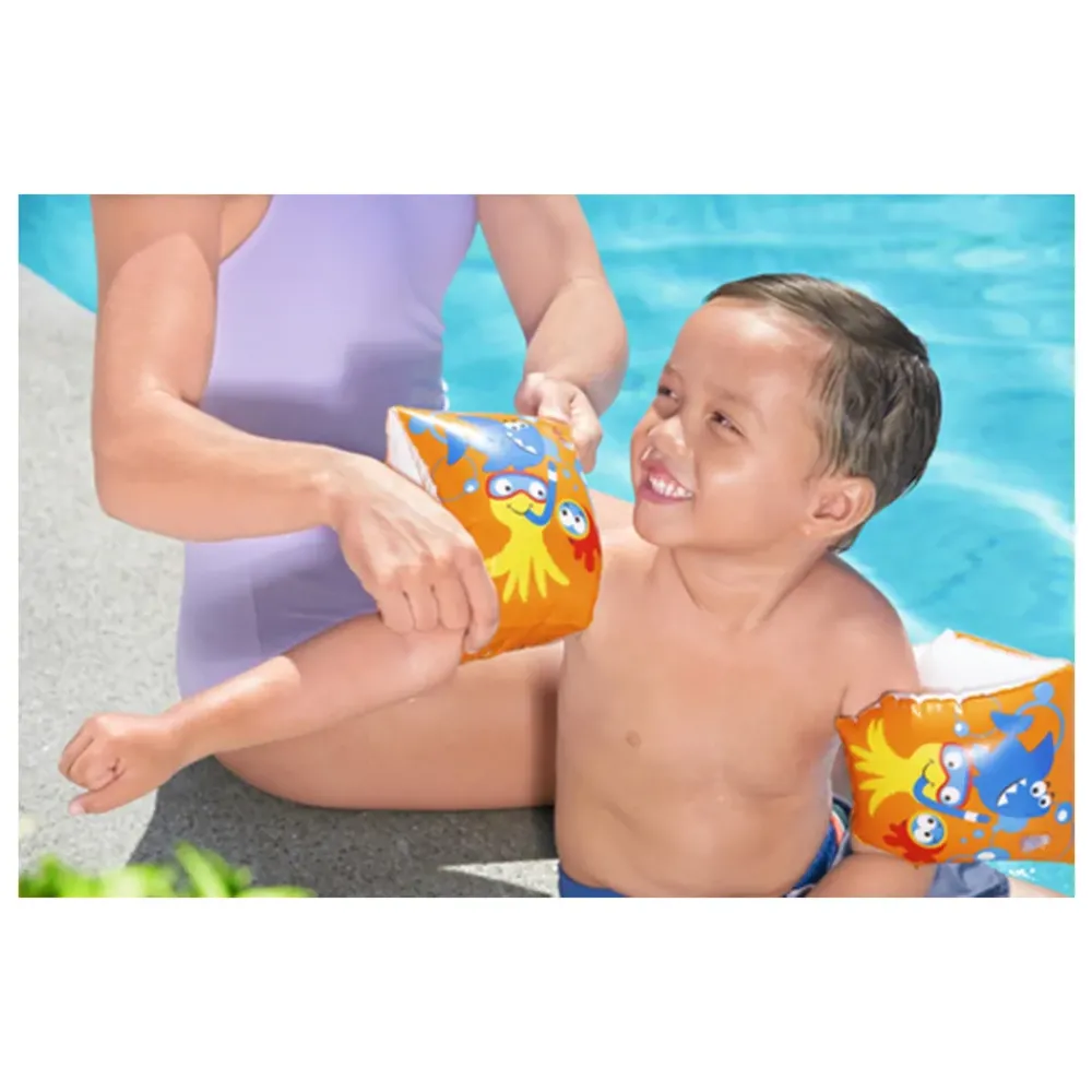 Prepara I Tuoi Bimbi A Sguazzare In Acqua Con I Braccioli Friendly Fish Di Bestway®! Questi Braccioli Gonfiabili Hanno Una Vestibilità Fantastica, Sono Comodissimi E Permettono Ai Tuoi Bambini Di Restare A Galla Mentre Si Divertono In Acqua. Come Valore Aggiunto, Presentano Inoltre Una Simpatica Grafica Con Animali Marini Per Renderli Ancora Più Gradevoli. Basterà Gonfiarli E Il Gioco È Fatto. Utili, Graziosi E Pratici – Ogni Piccolo Nuotatore Alle Prime Armi Merita Una Paio Di Braccioli Friendly Fish!