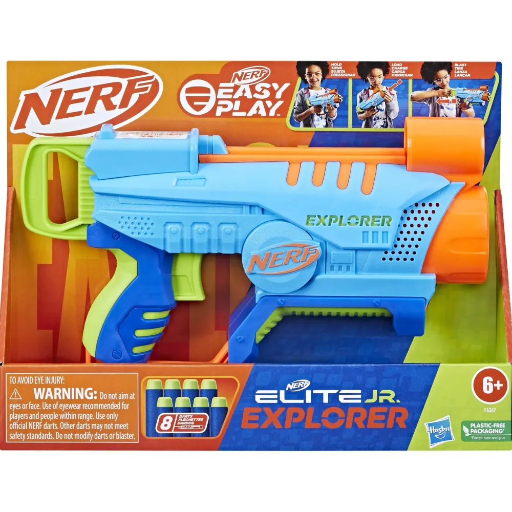 I Blaster Nerf Elite Junior In Gommapiuma Sono Pensati Per I Bambini E Le Bambine Che Giocano Con I Blaster Nerf Per La Prima Volta. Possiedono Caratteristiche Speciali Che Li Rendono Facili Da Usare, Così I Bambini E Le Bambine Possono Subito Lanciarsi In Esaltanti Sfide Nerf, Sperimentando Il Brivido Di Farlo In Completa Autonomia. Questi Blaster Sono Facili Da Tenere In Mano, Perché Sono Di Dimensioni Adatte A Mani Piccole E Molto Leggeri. Il Design Con Carica Frontale Semplifica L’Inserimento Dei Dardi. Rispetto A Tutti Gli Altri Blaster Nerf, L’Impugnatura Di Questo Blaster Richiede Una Forza Minima Per Poter Essere Tirata Indietro, Così È Facile Lanciare. Grazie A Tutte Queste Caratteristiche, I Bambini E Le Bambine Possono Lanciarsi In Tantissime Sfide Ricche Di Adrenalina, Mostrando A Tutti Le Loro Abilità Nel Caricare E Lanciare I Dardi In Completa Autonomia! Il Blaster Nerf Elite Junior Explorer Lancia 4 Dardi Di Fila Ed È Dotato Di Un Mirino Di Grandi Dimensioni. E Include 8 Dardi Nerf Elite In Gommapiuma. Si Raccomanda Di Indossare Un Paio Di Occhiali (Non Inclusi). Ogni Blaster Viene Venduto Separatamente, Secondo Disponibilità. Nerf E Tutte Le Proprietà Correlate Sono Marchi Commerciali Di Hasbro
