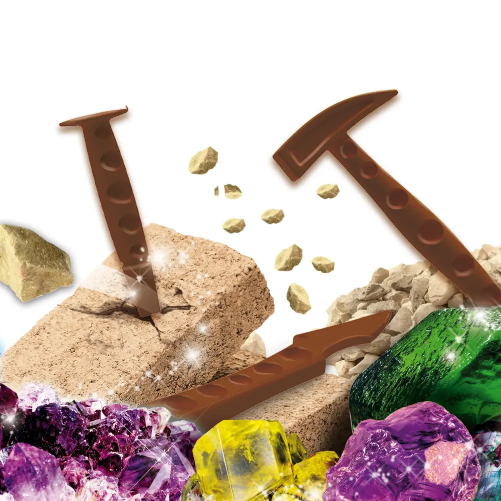 Un Kit Scientifico Per Scoprire I Minerali Del Nostro Pianeta. Nella Confezione Troverai Un Blocco Di Gesso Da Scavare Con Gli Speciali Attrezzi Ed In Più, Il Grande Poster Didascalico Per Scoprire Tante Curiosità Sulle Gemme Preziose.