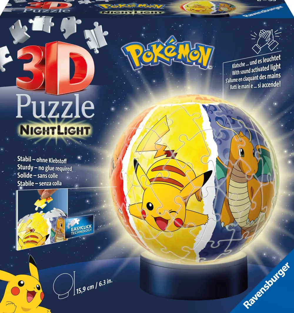Un Must Have Per Ogni Fan Dei Pokémon. Costruisci La Lampada Con Luce Dei Pokémon Assemblando I 72 Pezzi Di Puzzle. Come Fare? Segui Il Sistema Di Frecce E Numeri Sul Retro Di Ogni Pezzo E Montare Il Tuo Puzzle 3D Sarà Facile E Divertente!