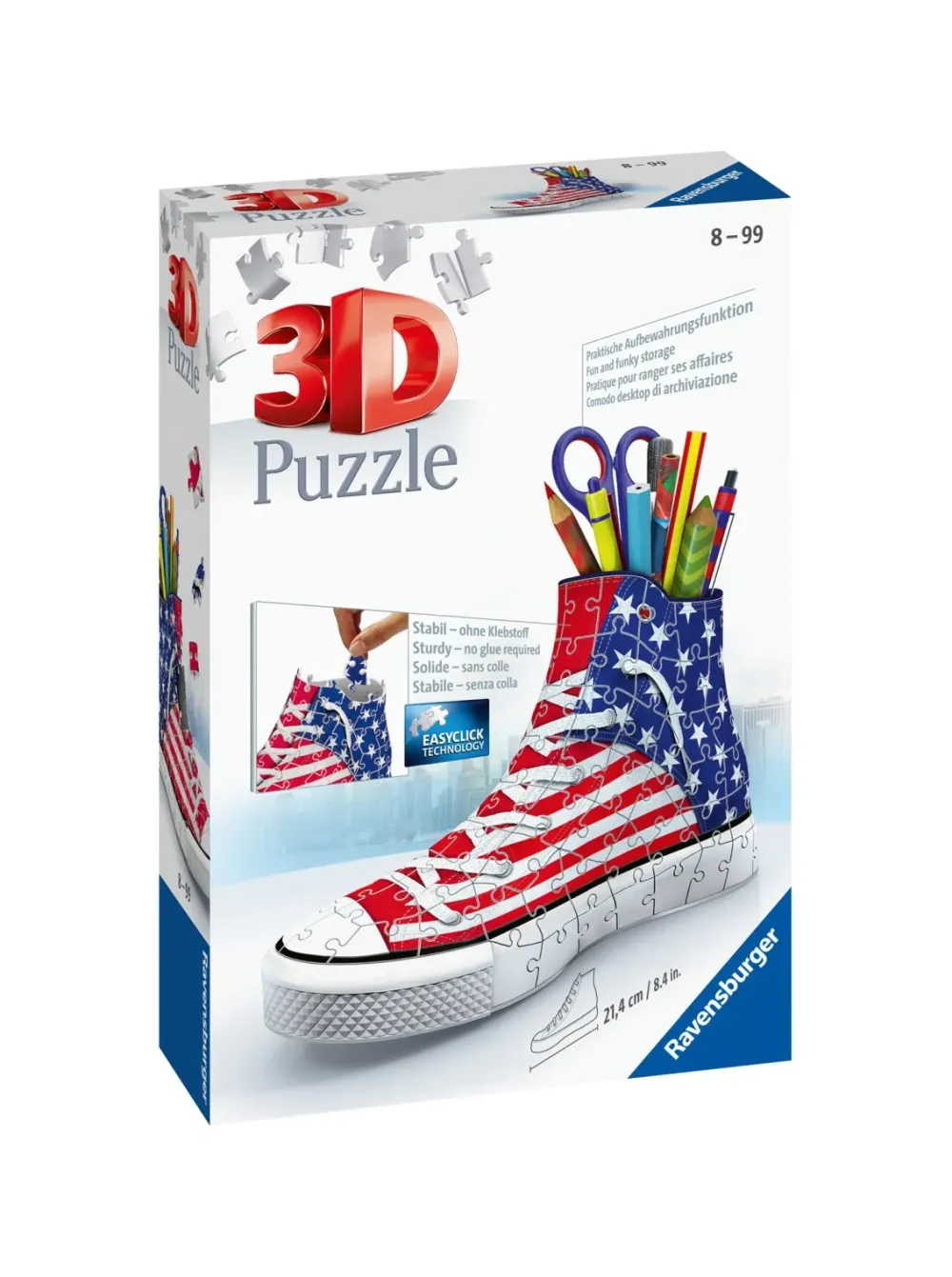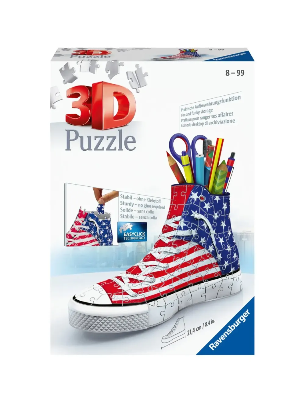 Crea Un Fantastico Portapenne Con I 3D Puzzle Ravensburger! Costruisci Tassello Per Tassello Un Originale Organizer Per La Tua Scrivania: Ogni Pezzo È Numerato Per Aiutarti Nell’Assemblaggio E Si Contraddistungue Per Robustezza Ed Elevata Qualità. Non Avrai Bisogno Di Colla: Grazie Al Taglio Dei Tasselli, L’Incastro Risulterà Estremamente Preciso E Stabile.