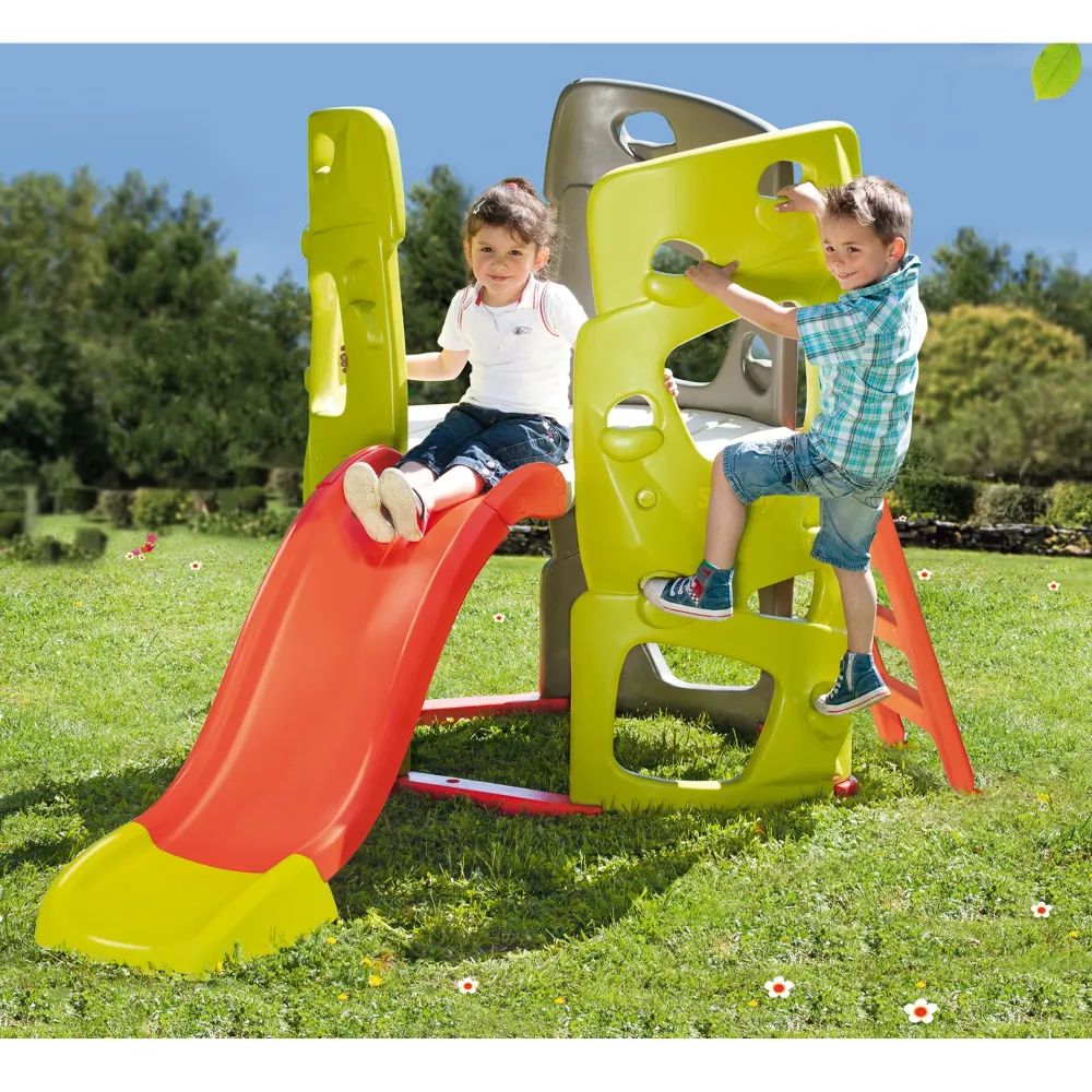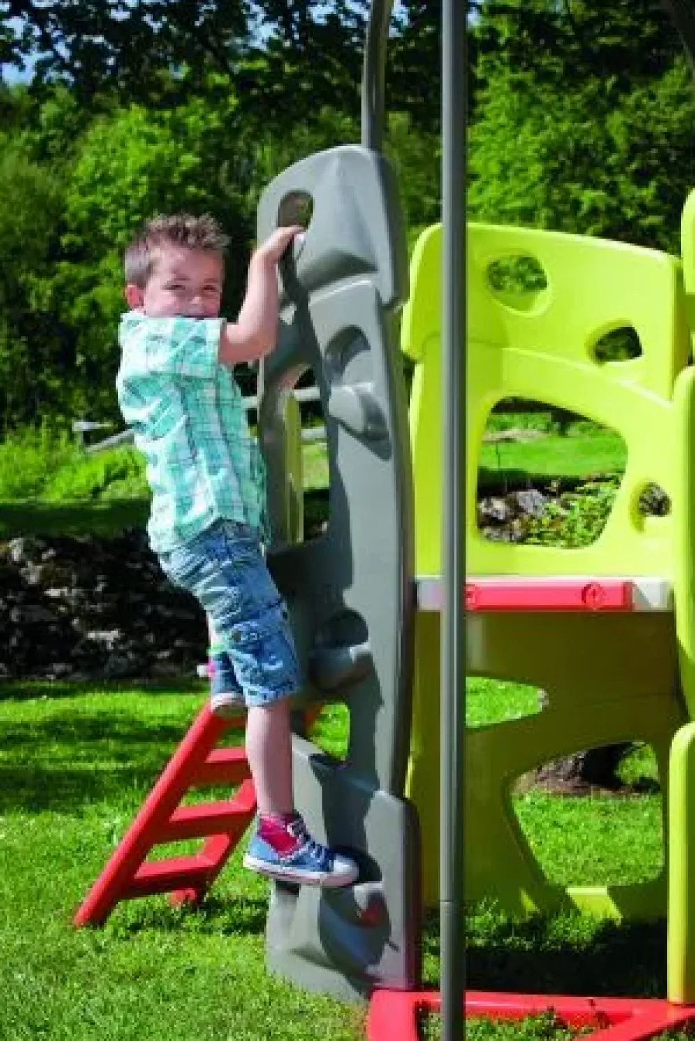 Torre Della Scalata È Un Multigioco Unico, Completo Di Tre Pareti Da Scalata, Un Tubo Da Discesa, Scaletta Che Porta Alla Piattaforma Da Cui Scendere Attraverso Lo Scivolo Che Ha Una Scivolata Di 1,50 Mt, Il Prodotto Montato Misura 240*173*170 Cm, Made In France, Sistema Anti-Uv Che Garantisce La Brillantezza Dei Colori Nel Tempo