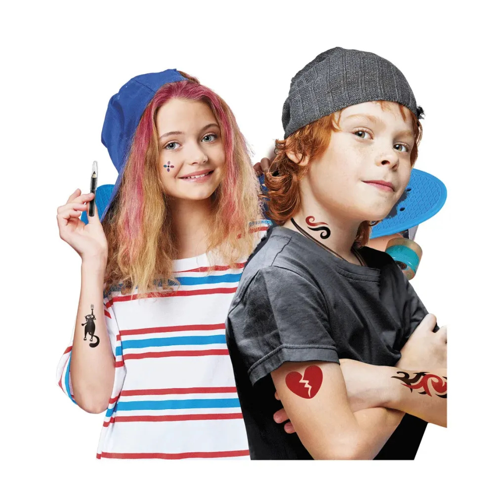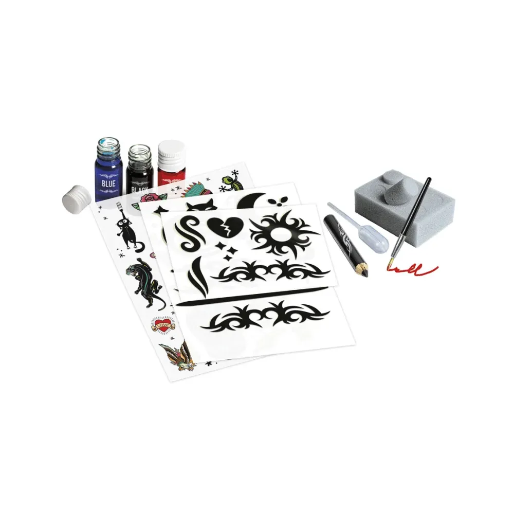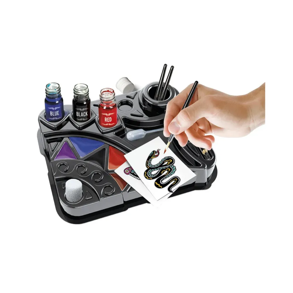 Un Laboratorio, Ma Anche Un Incredibile Set Con Tutto Il Necessario Per Realizzare Tatuaggi Alla Moda! Contiene Un Banchetto Da Lavoro, Pennelli, Coloranti Liquidi E Stencil Per Realizzare Tatuaggi A Mano Libera Proprio Come Un Vero Tatuatore! Il Manuale Spiega Passo Passo Come Realizzare I Tatuaggi, Guidando Il Bambino In Un’Esperienza Di Gioco Divertente E Coinvolgente. Tutte Le Sostanze E I Materiali Inclusi Nel Kit Sono Testati Per Garantire La Massima Sicurezza Sulla Pelle. Un Gioco Che Stimola La Creatività E La Manualità.