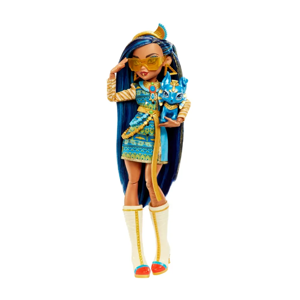 Le Mostramiche Di Monster High Tornano A Scuola Con Look All’Ultimo Grido! La Bambola Cleo De Nile Percorre I Corridoi Di Monster High Con Un Outfit Ispirato Alle Sue Terrificanti Origini Regali, Composto Da Un Abito In Royal Blue Con Maniche In Stile Mummia E Una Cintura A Catena Da Urlo. Il Suo Look Spaventosamente Chic È Completato Da Stivali Al Ginocchio, Zainetto A Forma Di Piramide Con Borchie-Scarabeo E Accessori Dorati Alla Moda. Porta Il Look Della Bambola Cleo De Nile A Un Livello Superiore Con La Giacca Con Frange All’Ultimo Grido E Altri Accessori. Vivi Avventure Da Brivido Con Tut, Il Suo Cagnolino Spettralmente Simpatico! La Bambola Non Può Reggersi In Piedi Da Sola. Colori E Decorazioni Possono Variare.