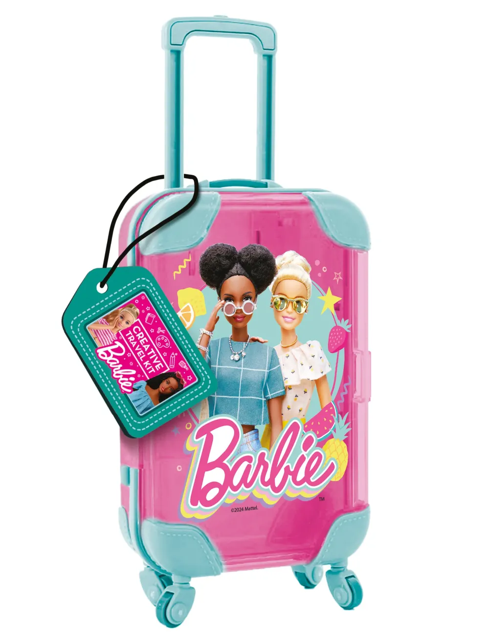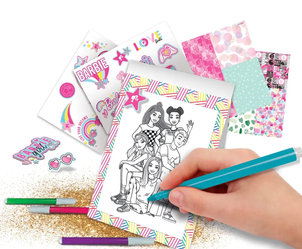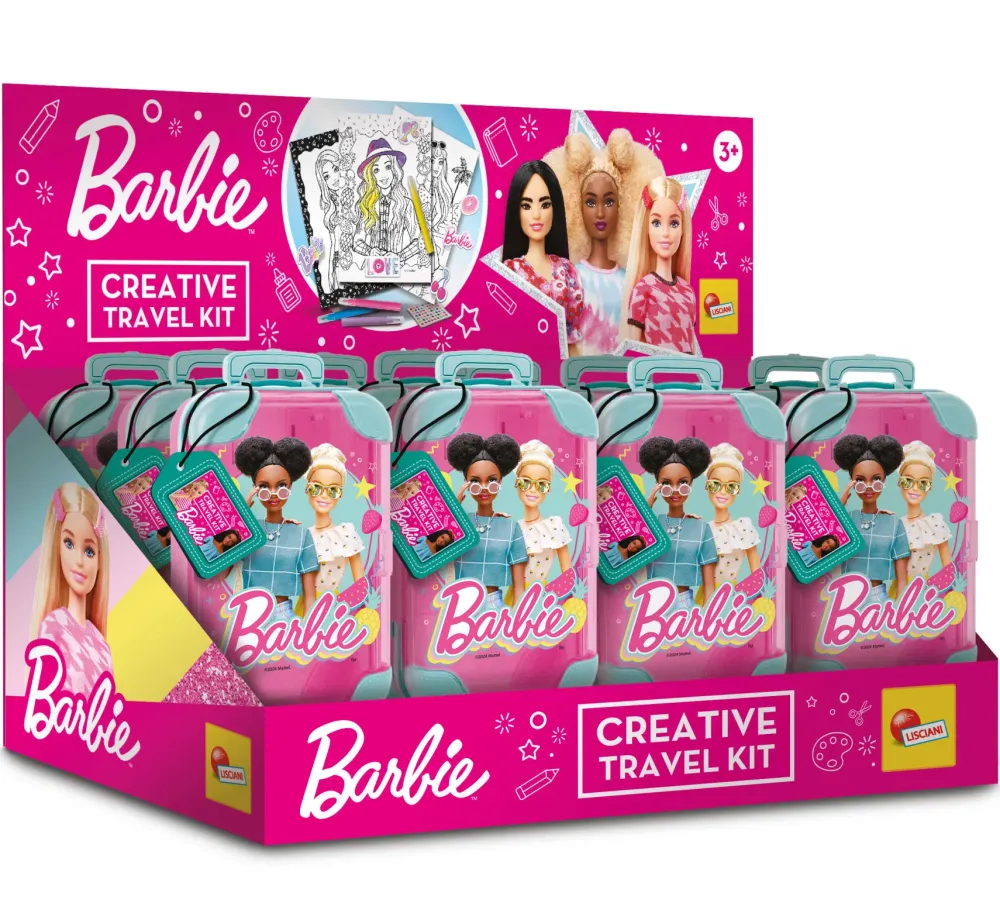 Un Mini Kit Creativo Racchiuso In Un Fantastico Trolley Di Barbie Da Portare Sempre Con Te! All’Interno Un Libretto Da Colorare, 4 Pennarelli Colorati, Stickers, Diamanti Adesivi E Stickers Glitterati Per Decorare E Colorare Tantissime Illustrazioni.