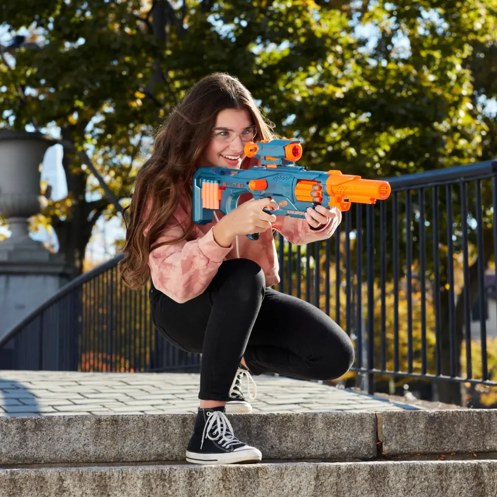 Personalizza Il Blaster Eaglepoint Rd-8 Di Nerf Elite 2.0 Per Ogni Missione! Questo Blaster Lancia-Dardi Nerf Include Un Mirino E Una Canna Staccabili In Modo Da Poter Creare Blaster Dagli Stili Diversi Per Ogni Battaglia Nerf. Personalizza Il Corpo Del Blaster: Aggiungi Il Mirino Per Prendere La Mira Dei Tuoi Bersagli, Aggiungi La Canna Per Bersagli Distanti. Sii Pronto A Tutto Con Il Blaster Eaglepoint Rd-8. Il Tamburo Rotante Ha Una Capacità Di 8 Dardi. Lancia 8 Dardi Di Fila, Quindi Successivamente Ricaricalo Velocemente Dal Portadardi Su Blaster Che Può Contenere 8 Dardi. Questo Blaster Nerf Elite 2.0 Include 16 Dardi Originali Nerf Elite: 8 Dardi Da Caricare Nel Tamburo E 8 Dardi Da Riporre Sul Blaster. Prendi La Mira E Lancia I Dardi Nell’Aria Fino A 27 Metri Di Distanza. Presenta 3 Binari Tattici Per Aggiungere Accessori Nerf (Ciascuno Venduto Separatamente, Secondo Disponibilità). Si Raccomanda L’Utilizzo Di Occhiali Protettivi (Non Inclusi). Non Sono Necessarie Batterie. Nerf E Tutte Le Proprietà Correlate Sono Marchi Commerciali Di Hasbro.