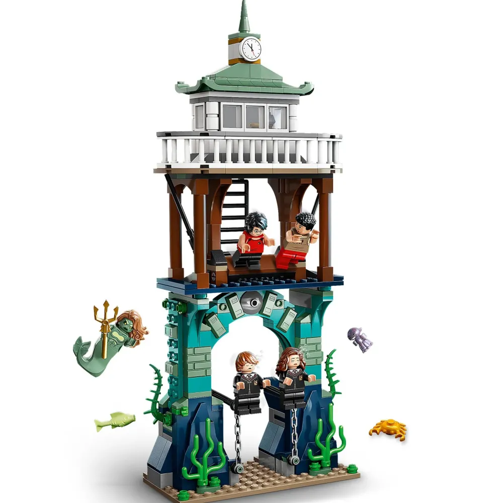 Questo Set Di Giochi Harry Potter Comprende Una Costruzione Con Un Arco Subacqueo In Rovina, 2 Grotte Con Tesori Nascosti Ed Elementi Lego Flessibili, Con Cui Creare L’Effetto Di 2 Minifigure Che Galleggiano. È Presente Anche Il Modellino Da Costruire Di Un Molo Con Barca Giocattolo A Remi, Dotato Di Una Funzione Per Far Tuffare Le Minifigure Lego, E Posizionabile Sopra La Scena Subacquea. Il Set Include Diversi Accessori Originali, Come La Pozione Algabranchia E Una Figura Di Animale Giocattolo, Oltre Ai Personaggi Di Harry Potter, Con Pinne Per Nuotare, Viktor Krum, Con Un Elemento Testa Di Squalo, Hermione Granger, Ron Weasley, La Minifigure Lego Di Una Maride E Il Personaggio Dell’Avvincino – Novità Di Marzo 2023.