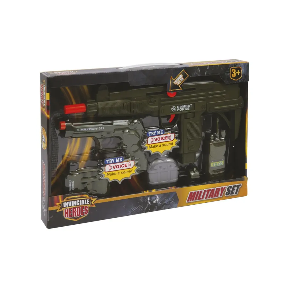 Grande Set Militare Con 6 Accessori Inclusi:– Mitra, Pistola, Binocolo, Fischietto, Ricetrasmittente E Bomba A Mano
