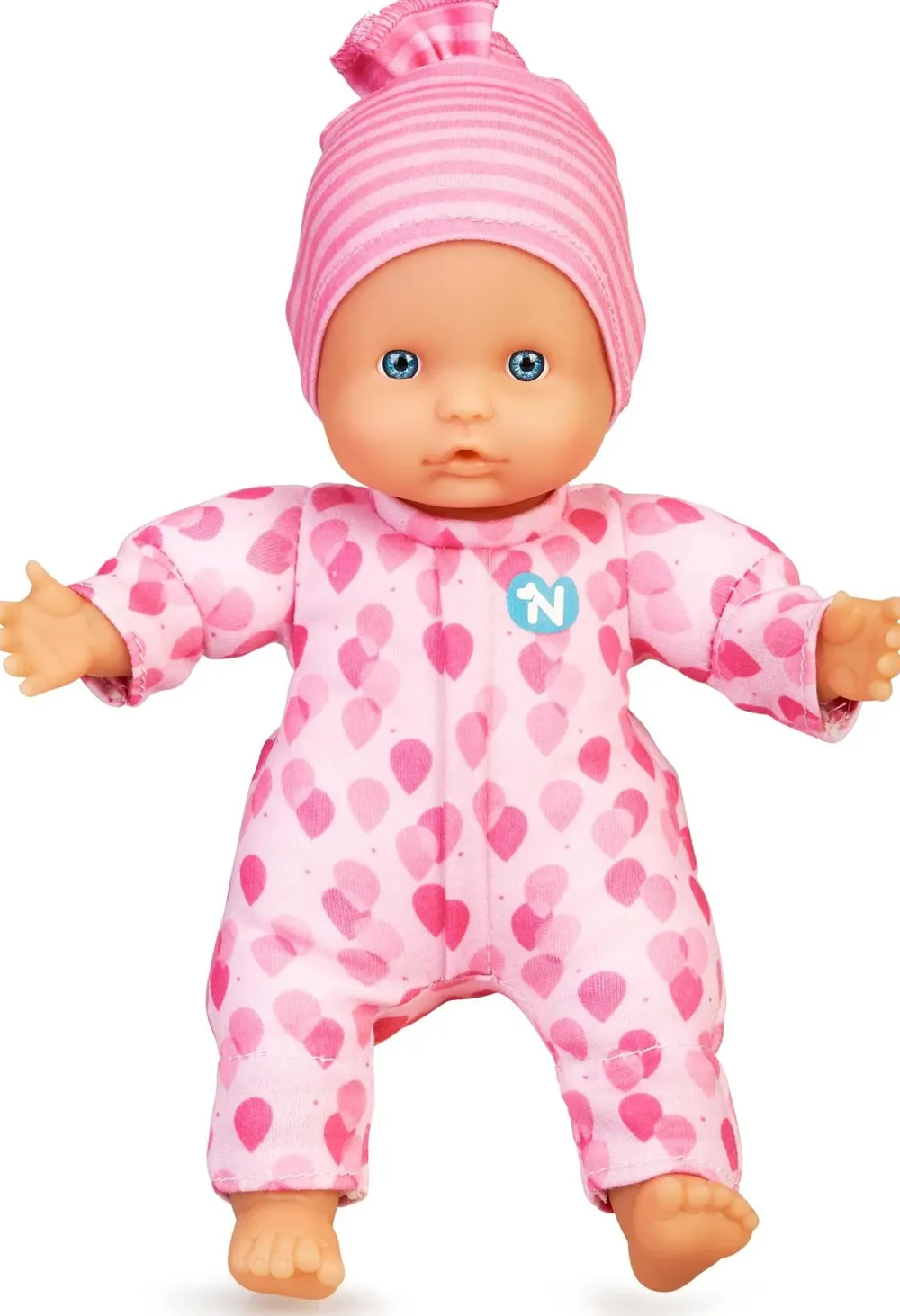Bambola Nenuco Morbida Con 3 Funzioni Con Un Pigiamino Rosa E Un Cappellino Rosa A Righe. Quando Le Premi La Manina O Il Piedino Emetterà Dei Suoni. Può Mettere Il Dito In Bocca Proprio Come I Veri Bambini.