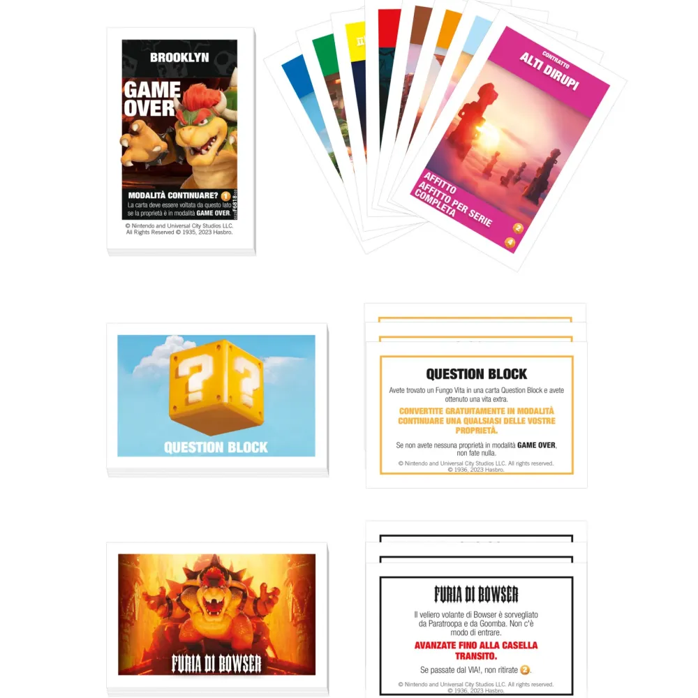 Con Il Gioco Da Tavolo Per Bambini E Bambine Monopoly The Super Mario Bros. Movie Edition, Appassionati E Appassionate Possono Esplorare Il Regno Dei Funghi, Comprando, Vendendo E Scambiando Luoghi Dell’Universo Di Super Mario! Ammira Le Grafiche, I Personaggi E I Temi Leggendari Di Mario, Ispirati Al Film. Le Monete D’Oro Sostituiscono I Tradizionali Soldi Di Monopoly In Questa Gara A Chi Riesce A Ottenere Il Maggior Numero Di Monete Per Vincere. Se Possiedi Serie Di Proprietà Complete, Il Tuo Guadagno Aumenta! Ma Fai Attenzione A Bowser, Che Può Sottrarre Proprietà, Rubare Monete O Mandare Giocatori In Prigione! Scopri Le Scorciatoie Tubo E Ottieni O Perdi Monete Con I Blocchi Punto Interrogativo E Le Piante Piranha! I Giochi Di Super Mario Sono Regali Entusiasmanti Per Bambini E Bambine, Giocatori, Appassionati E Appassionate Di Mario E Di Monopoly, Dagli 8 Anni In Su. Tm & Copyright 2023 Nintendo. Tutti I Diritti Riservati. Copyright Universal City Studios Llc E Amblin Entertainment, Inc. Tutti I Diritti Riservati. I Nomi E I Loghi Hasbro E Monopoly Il Disegno Distintivo Del Tabellone, I Riquadri Ai Quattro Angoli, Il Nome E Il Personaggio Di Mr. Monopoly, E Tutti Gli Altri Elementi Distintivi Del Tabellone E Degli Altri Componenti Di Gioco Sono Marchi Commerciali Di Hasbro, Inc. Per Il Proprio Gioco Di Contrattazione E Per Tutti I Componenti Del Gioco. © 1935, 2023 Hasbro. Tm & ® Indicano Marchi Commerciali Negli Stati Uniti.