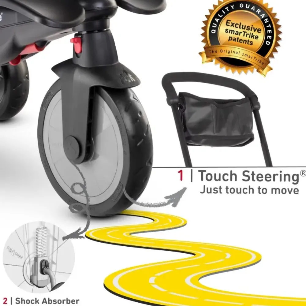 Smart Trike Str7 È Un Triciclo 7-In-1 Pieghevole E Compatto Con Sedile Reclinabile E Girevole Che Permette Di Cambiare Agevolmente La Posizione Da Fronte-Strada A Fronte-Bambino. Con Sistema Brevettato Touch Steering® E Ammortizzatori. Dotato Di Pulsante Per Passare Dal Controllo Bambino Al Controllo Genitore Con Un Semplice Clic. Subito Pronto All’Uso, Non Richiede Assemblaggio!