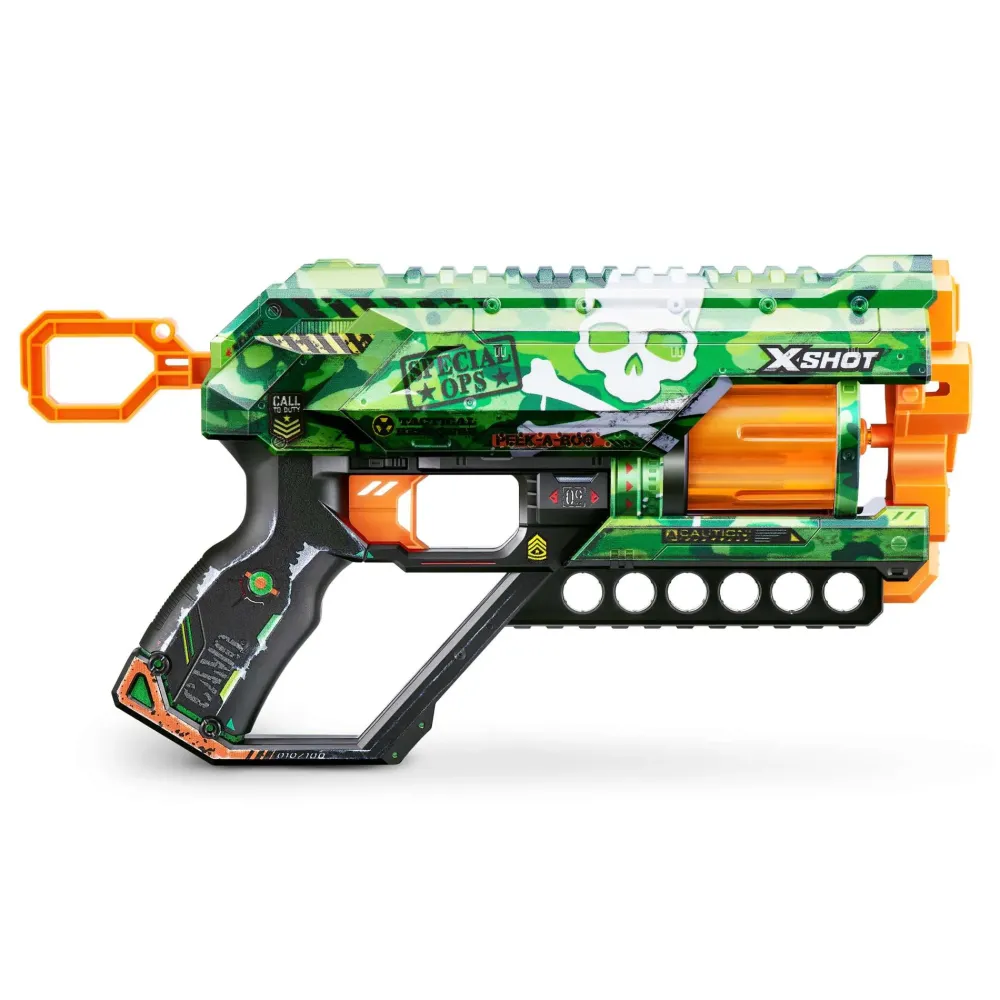 X-Shot Skins Porta L’Esperienza Di Personalizzare Il Tuo Blaster Nel Mondo Reale: Scegli La Tua Skin E Unisciti Alla Battaglia. L’X-Shot Skins Griefer È Così Potente Da Permetterti Di Affrontare Bersagli Fino A 27 M Di Distanza! Questo Blaster Spazza Via Gli Avversari Con Un Fuoco Rapido Di 6 Dardi In Meno Di 30 Secondi Utilizzando La Canna Rotante. Il Blaster X-Shot Skins Griefer È Disponibile In 6 Skin Uniche Da Selezionare E Collezionare E Viene Fornito Con 12 Dardi In Schiuma Air Pocket Technology. Scegli Diverso, Scegli X-Shot Skins.