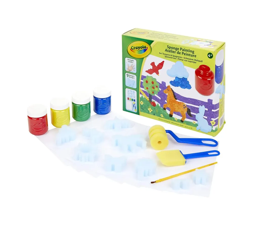 Tutto Il Necessario Per Creare Tante Scenette Con Le Tempere E Le Spugnette Dalle Simpatiche Forme. Contiene Anche Un Pennellone E Un Rullo Per Realizzare Grandi Effetti Pittorici!