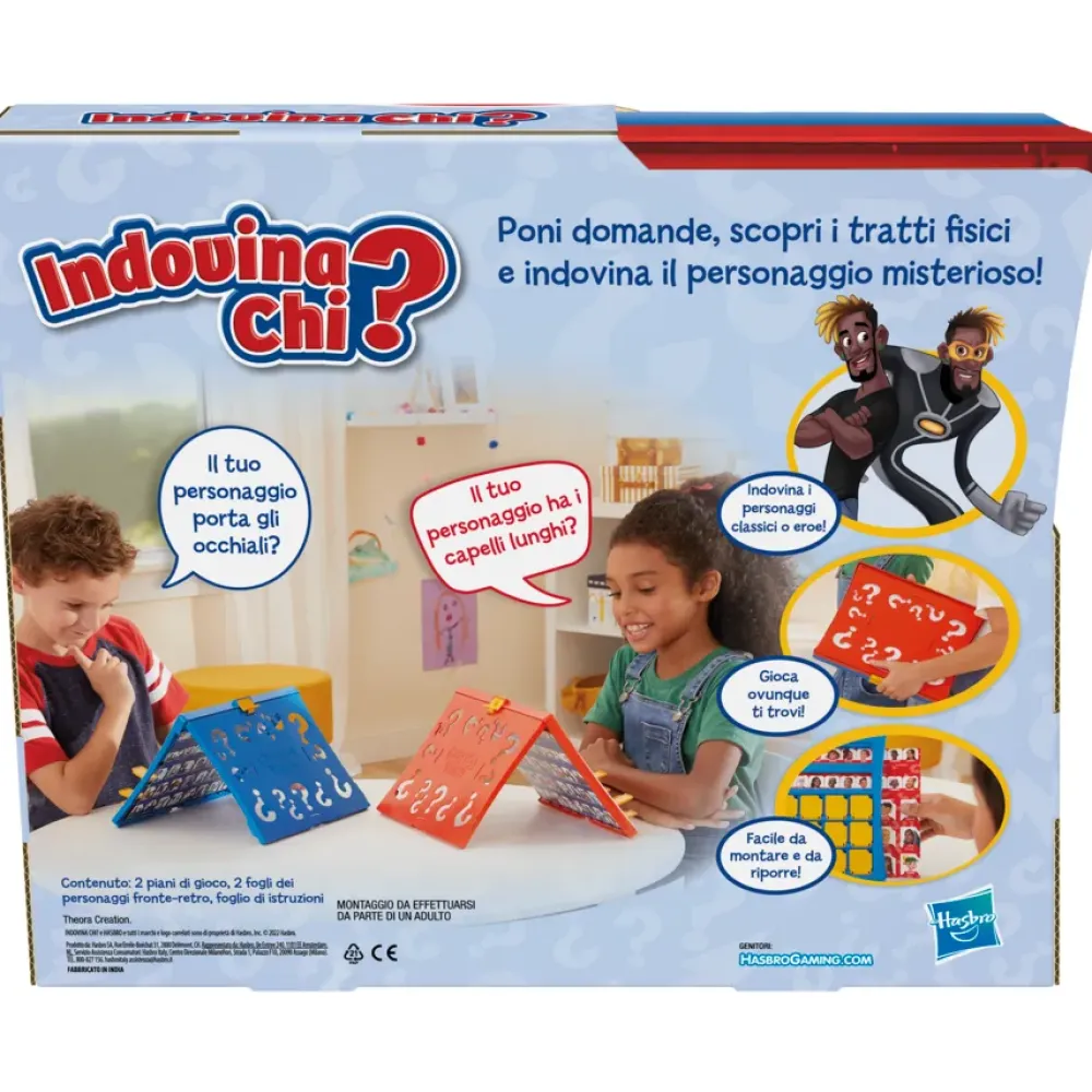 Fai Riaffiorare I Ricordi Della Tua Infanzia Con Il Classico Indovina Chi? E Fai Conoscere La Nuova Edizione Del Famosissimo Gioco Di Ipotesi Ai Tuoi Figli E Nipoti. Con Indovina Chi? Ogni Giocatore Deve Scegliere Una Carta Personaggio Misterioso E Poi, Facendo Domande A Cui Si Può Rispondere Solo Sì O No, Cercare Di Capire Il Personaggio Misterioso Dell’Avversario. Il Gioco È Dotato Di 2 Schede Personaggio Fronte-Retro, Di Cui Una Con I Personaggi Dei Supereroi. Le Schede Personaggio Si Inseriscono E Si Estraggono Facilmente Dalla Struttura/Tabellona Da Gioco, Rendendolo Facile Da Utilizzare. La Comoda Custodia Pieghevole Lo Rende Perfetto Anche Per Giocarci In Viaggio. Indovina Chi? Per 2 Giocatori È Un’Ottima Attività Da Fare In Casa Per Bambini E Bambine Dai 6 Anni In Su. Hasbro Gaming E Tutti I Termini Correlati Sono Marchi Commerciali Di Hasbro.