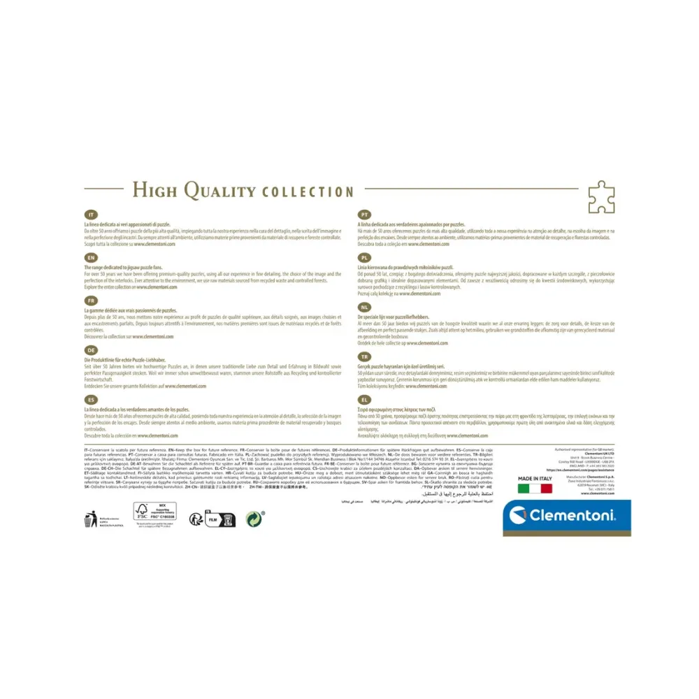 Puzzle Adulti 2000 Pezzi Dimensione Puzzle Completo: 97,5 X 66,8 Cm Le Immagini Più Suggestive, La Più Grande Varietà Di Pezzatura E La Qualità Firmata Clementoni Per Una Linea Che È Un Riferimento Per Tutti Gli Appassionati Di Puzzle Da Sempre Sensibile Al Problema Dell’Ecologia, La Clementoni Fa Un Largo Uso Di Materiali Riciclati, Evitando L’Impiego Di Componenti Inquinanti. Made In Italy. Visita La Sezione Assistenza Clementoni Per Usufruire Del Servizio “Pezzi Smarriti”