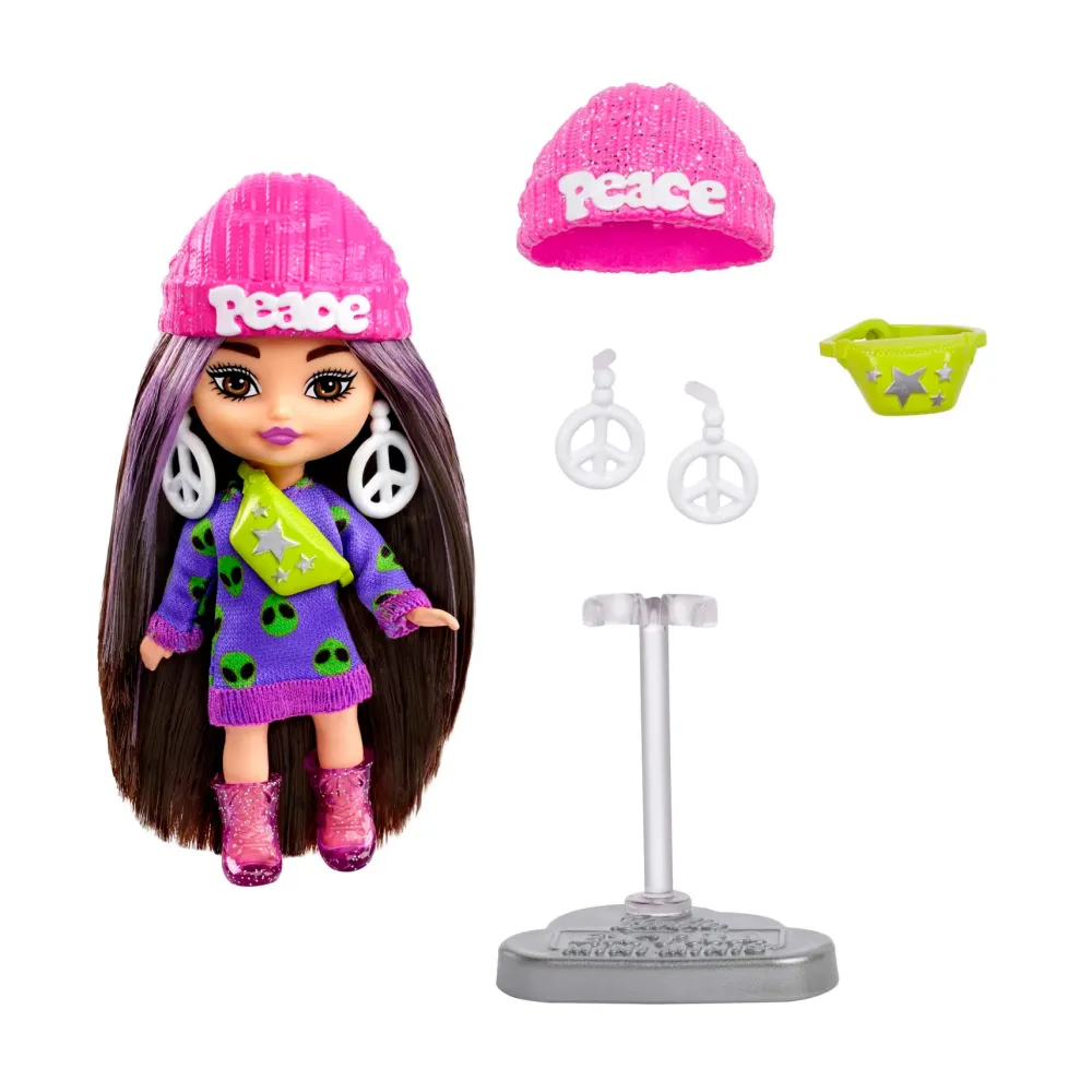 Clearance Extra Mini Minis, Bambola Con Capelli Castani E Abito Di Maglia Con Alieno, Abiti E Accessori Con Simbolo Della Pace, Giocattolo Per Bambini, 3+ Anni, Hln46 Macchinine Bambini