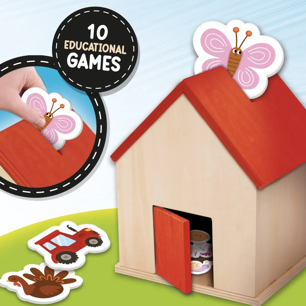 Una Graziosa Casetta In Legno Per Fare Tanti Giochi Di Attenzione! Con Tanti Elementi Della Fattoria Per Sviluppare La Capacità Di Concentrazione.
