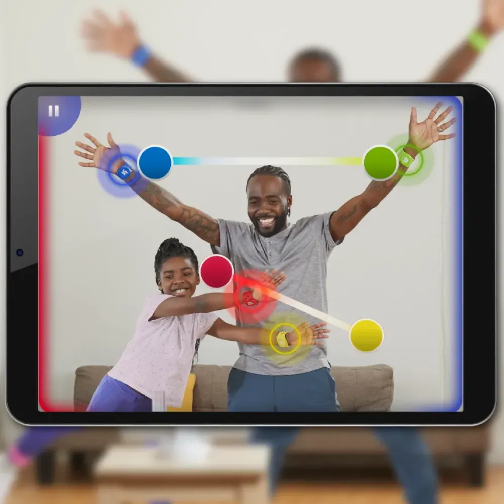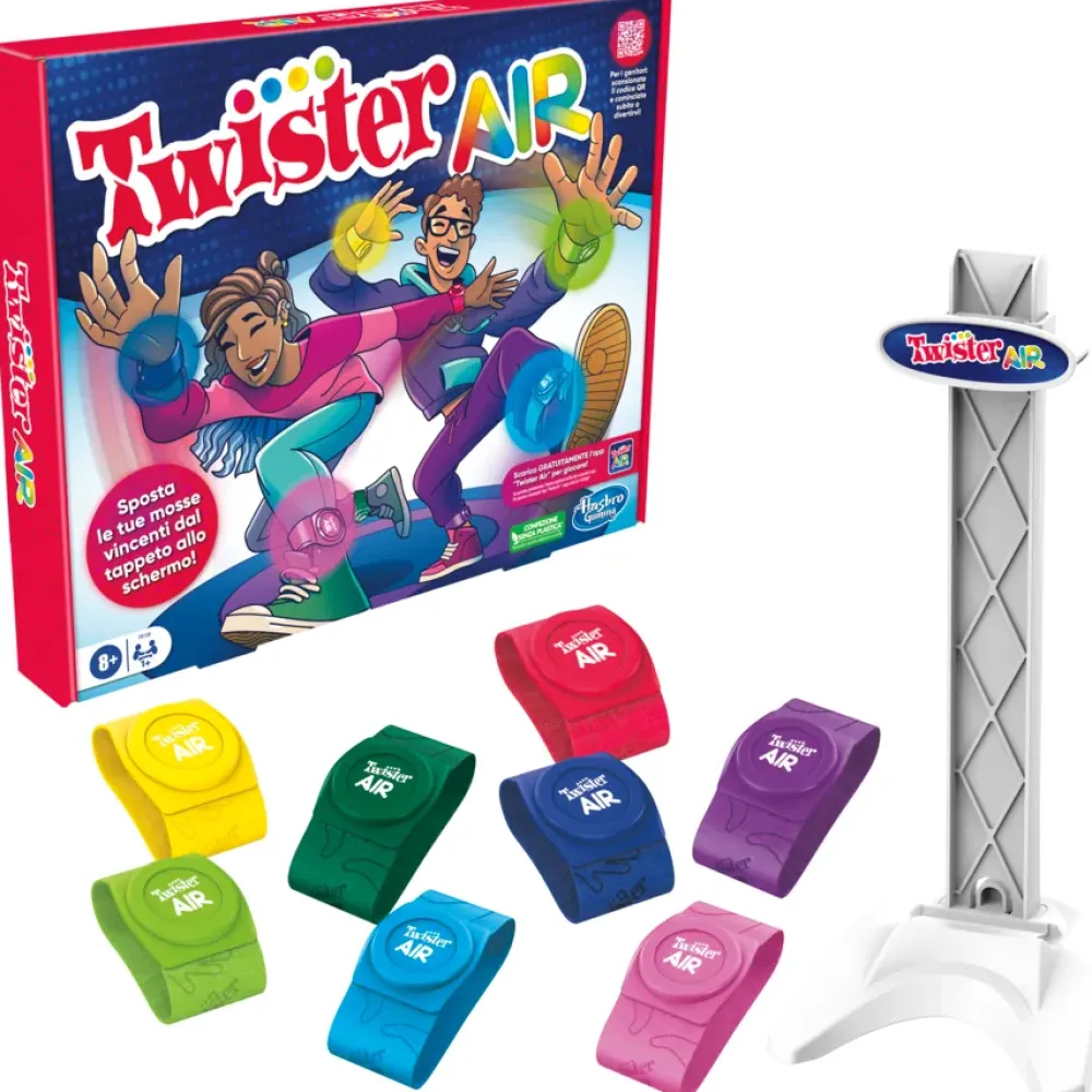 Nessun Tappeto? Hai Capito Bene! Sposta Le Tue Mosse Vincenti Dal Tappeto Allo Schermo Con Il Gioco Twister Air! Con Questa Versione Di Twister Da Abilitare In App, La Festa Si Sposta Sul Dispositivo Smart Di Un Giocatore. Questo Gioco Divertente Per Feste Include 8 Fasce Colorate Twister Air E Un Supporto Per Dispositivo Che Può Contenere Sia Smartphone Che Tablet (Dispositivo Smart Non Incluso). Per Iniziare A Giocare, Scarica L’App “Twister Air” (Da Scaricare Gratuitamente; Possono Applicarsi Tariffe Dati E Acquisti In-App) E Posiziona Il Dispositivo Smart Sul Supporto Incluso. Dopodiché I Giocatori Indossano Le Fasce Sui Polsi E Sulle Caviglie E Sono Pronti Per L’Azione! A Ritmo Di Musica, I Giocatori Si Muovono Per Far Corrispondere Le Loro Fasce Ai Cerchi Colorati Sullo Schermo. Spostati, Scivola, Batti Le Mani E Assumi Pose Pazzesche. Più I Tuoi Movimenti Saranno Precisi, Maggiore Sarà Il Tuo Punteggio. Vince Chi Ottiene Più Punti! Oppure Gioca In Solitaria Per Battere Il Tuo Record Precedente. Sei Alla Ricerca Di Giochi Divertenti Per Le Feste? Il Gioco Twister Air Con L’App A Realtà Aumentata È Un Gioco Ideale Per Le Feste Di Bambini E Bambine E Le Serate Di Giochi. I Giochi Interattivi Sono Un Fantastico Regalo Per Le Vacanze Per Le Famiglie E Bambine E Bambini Dagli 8 Anni In Su. Apple, Il Logo Apple, Iphone E Ipad Sono Marchi Commerciali Di Apple Inc., Registrati Negli Stati Uniti E In Altri Paesi. App Store È Un Marchio Di Servizio Di Apple Inc. Android, Google Play E Il Logo Google Play Sono Marchi Commerciali Di Google Llc. Twister E Hasbro E Tutti I Termini Correlati Sono Marchi Commerciali Di Hasbro.