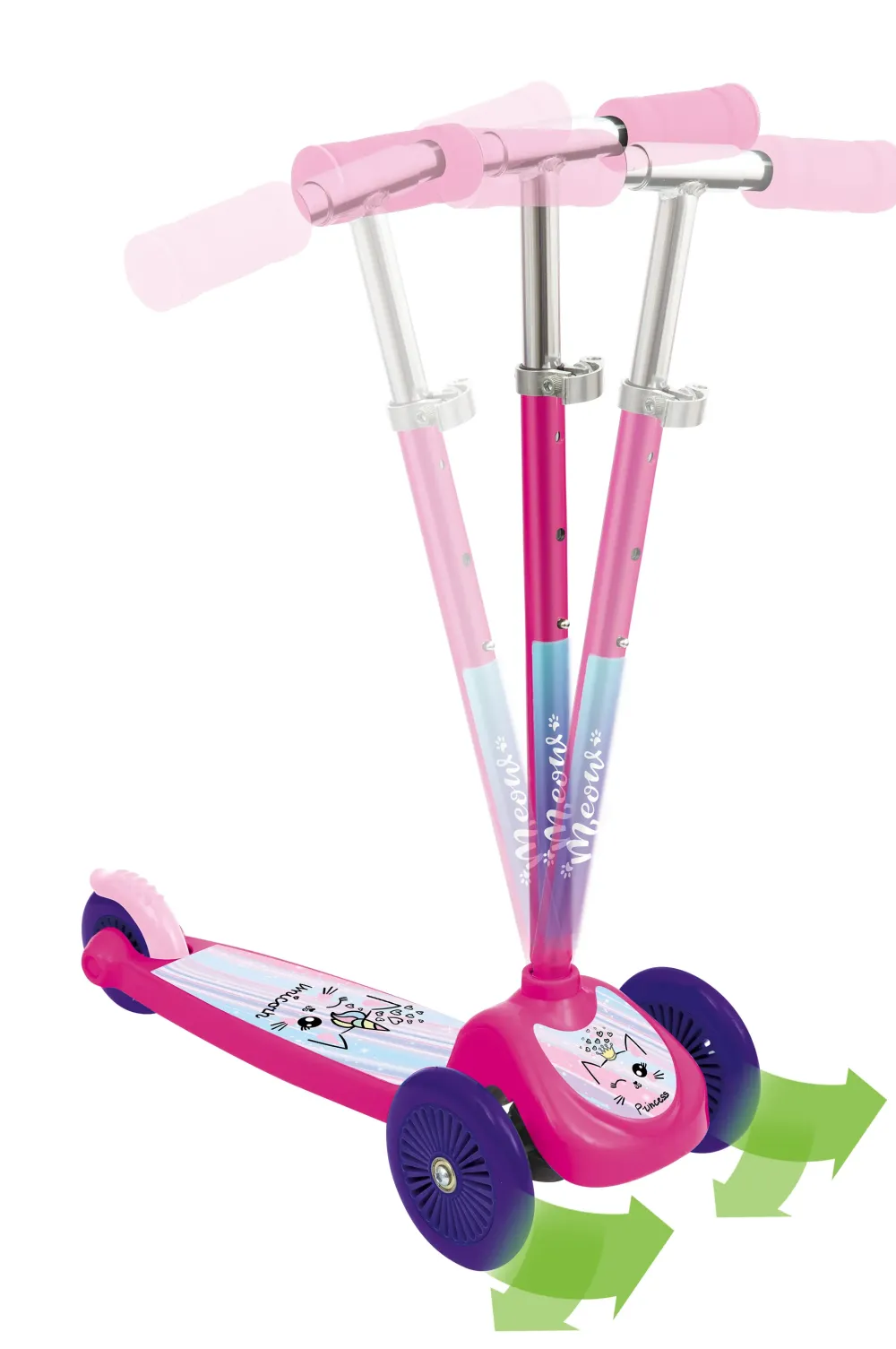 Il Monopattino 3 Ruote Twist & Roll, Disponibile In Blu E Rosa, È Il Compagno Ideale Per Divertirsi All’Aria Aperta. Questo Monopattino È Progettato Con Un Sistema Direzionale Sulle Ruote Anteriori Per Aiutare Il Bilanciamento In Curva, Rendendo La Guida Più Sicura E Stabile Per I Bambini Dai 3 Ai 5 Anni.