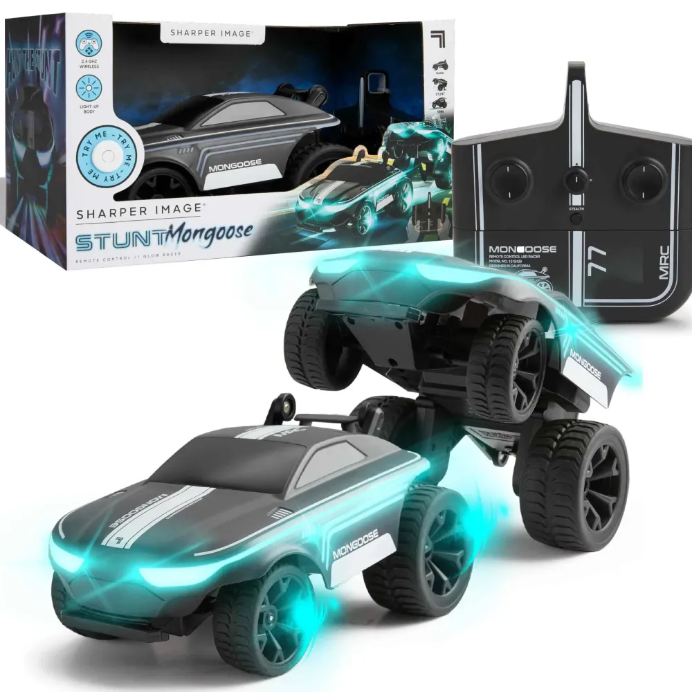 Illumina Le Tue Corse Con Stunt Moongose Di Sharper Image. Le Eccezionali Luci Led Del Veicolo Rendono Spettacolare Ogni Tua Acorbazia. Grazie Ad Un Design Unico L’Esperienza Di Gioco È Straordinaria. Il Radiocomando Da 2,4 Ghz Ti Permette Di Eseguire, Salti, Corse Ed Acrobazie Senza Interruzioni Esterne. Alimentato A Batteria. L’Auto Richiede Richiede 6 Batterie Aa (Non Incluse) E Il Telecomando 3 Batterie Aa (Non Incluse).