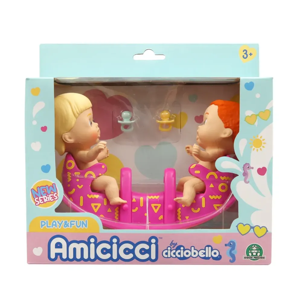 Ecco Il Nuovo Divertentissimo Passatempo Degli Amicicci: Il Dondolo A Due Posti! Insieme Alla Giostrina Colorata Trovi Due Personaggi Esclusivi: Un Boy E Una Girl. Il Tutto Accompagnato Da 4 Accessori: Due Pannolini E Due Ciucci. Con Il Dondolo Degli Amicicci Non Ti Stancherai Mai Di Giocare!
