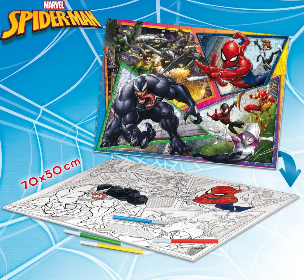 Divertiti A Ricostruire Le Scene Più Belle Del Tuo Supereroe Preferito, Dopo Aver Completato Il Puzzle, Il Divertimento Continua! Sul Retro Della Tavola Troverai Una Scena In Bianco E Nero Tutta Da Colorare!